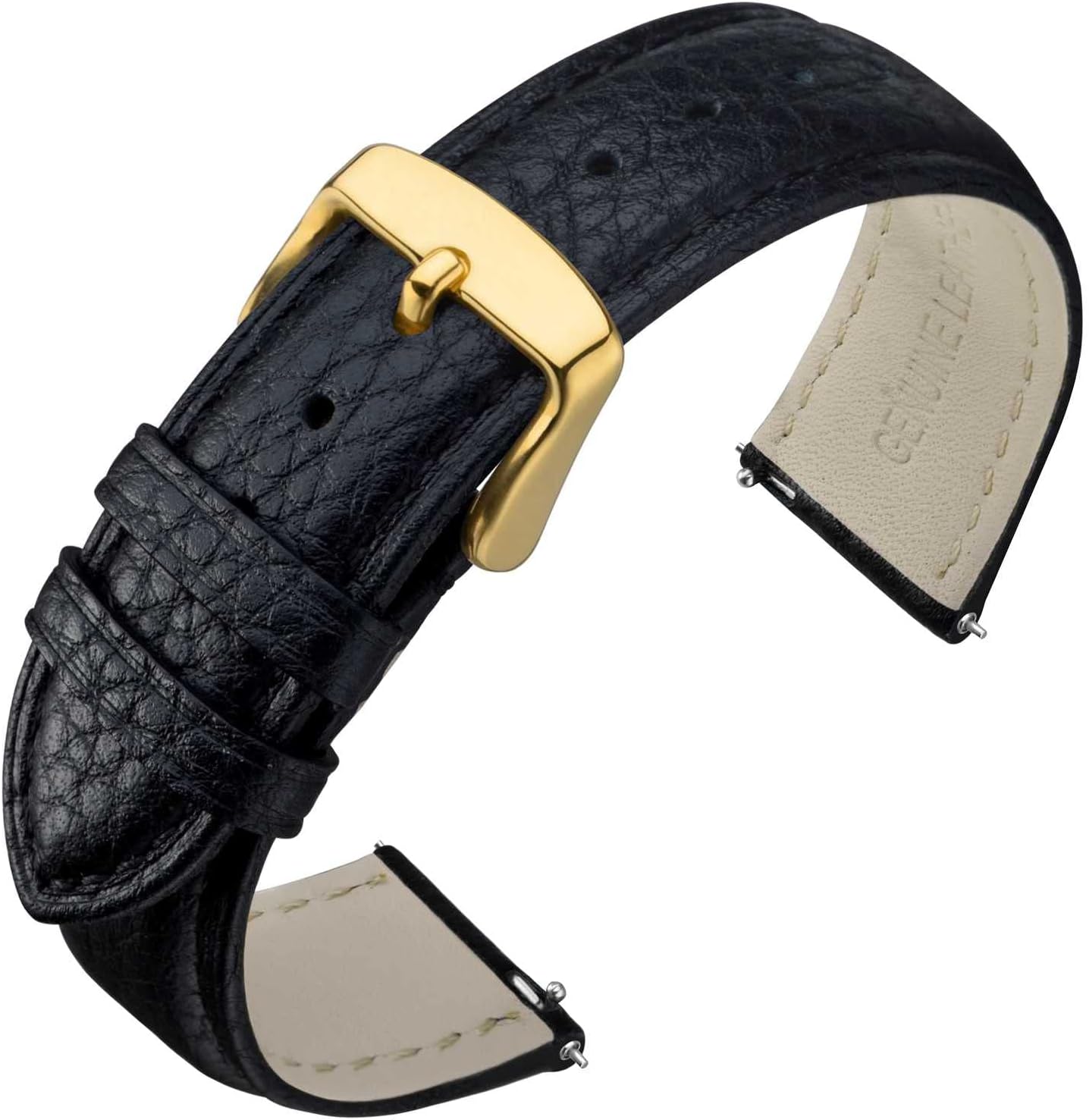 {"about_product": ["TEXTURED PADDED LEATHER: The classic litchi grain patterning fitted with a slim buckle for a sleek look. The soft lining leather, smooth yet everlasting is perfectly padded for unique comfort on the wearer", "SIZE SELECTION: ANNEFIT Provide 16mm, 18mm, 19mm, 20mm and 22mm width watch bands for you to choose from. Please measure the width of your lug watch correctly and choose corresponding width of watch band", "WRIST FIT: It is regular length, long part: 125mm, short part: 75mm, this leather watch band is designed to fit wrists 5.7'' to 8.1'' which covers most of the population", "QUICK RELEASE: Easily install and remove, simply slide the visible pin on the watch strap's underside inwards to release the spring bar for fitting or removal", "AFTER-SALE SERVICE: If the watch band has any quality problems, please contact us, we will solve the problem for you in the first time. If it is a size problem, please contact Amazon for FREE replacement of a suitable size"], "product_description": null, "product_information": {"ASIN": "B0B1HDL6YZ", "Color": "Black/Gold Buckle", "Units": "1 Count", "Thickness": "18 Millimeters", "Department": "mens", "Item Weight": "0.704 ounces", "Manufacturer": "ANNEFIT Watch Strap", "Best Sellers Rank": "#101,343 in Clothing, Shoes & Jewelry (See Top 100 in Clothing, Shoes & Jewelry) #92 in Men's Watch Bands", "Item model number": "H07PQ20F4BK2UK", "Package Dimensions": "7.28 x 2.87 x 0.08 inches", "Date First Available": "May 17, 2022", "Other display features": "Wireless"}, "product_details": {}}