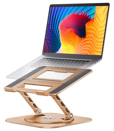 {"about_product": ["【Adjustable Laptop Stand】This computer stand is designed with adjustable in height and angle, so you can raise your laptop screen to a more ergonomic viewing height which is better for maintaining a healthy posture. You can adjust the height freely up and down, and adjust it anywhere from 0 to 90 degrees to suit your workflow.", "【360 Degree Rotation】This laptop desk stand can rotates on its centered round base, allowing the top half of the stand to rotate infinitely in either direction. This give you plenty of flexibility in terms of working position. It will be especially useful for group projects or meetings.", "【Heat Dissipation Design】There are rectangle-shaped cutouts at the top of laptop platform. These cutouts are designed to provide improved air flow to keep your notebook from overheating. The laptop riser also well-padded, with additional rubber bumpers around the outside of the laptop platform.", "【Wide Compatibility】The laptop raised stand supports all devices from 10-16 inches, including from the likes of MacBook Pro/Air, Dell, Asus and Lenovo. Made with premium aluminum alloy which make it more stable and sturdy to support up to 22lb (10kg).", "【Multi-purpose】The Aoevi laptop stand is perfect for the cluttered kitchen counter, table or small desk with its foldable design that also swivels to give everyone around the table easy access the laptop's screen. This stand is also a great choice if you’re using a second external monitor. Keeping both screen at the same height can cut down on eye strain, for more comfortable working conditions."], "product_description": null, "product_information": {"ASIN": "B0B1LH9RDT", "Brand": "AOEVI", "Color": "B-Silver", "Item Weight": "12.3 ounces", "Manufacturer": "Aoevi", "Best Sellers Rank": "#9 in Laptop Stands", "Product Dimensions": "7.87 x 9.84 x 7.87 inches", "Date First Available": "July 1, 2022", "Item Dimensions LxWxH": "7.87 x 9.84 x 7.87 inches"}, "product_details": {"Brand": "AOEVI", "Color": "B-Silver", "Form Factor": "Tower", "Compatible Devices": "Laptops", "Compatible Phone Models": "MacBook, MacBook Pro, MacBook Air, Asus, Sony, Dell, HP, Toshiba, Lenovo and more 10-16inch laptops"}}