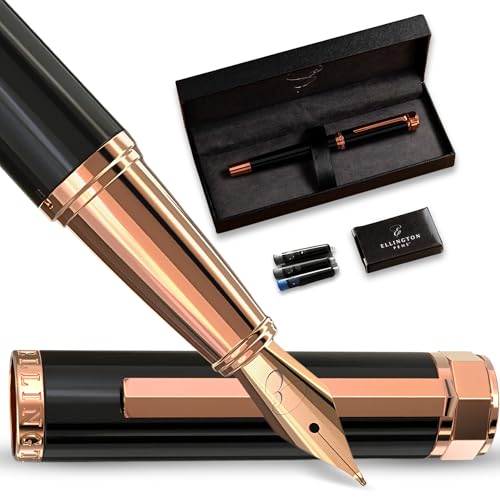 {"about_product": ["ELEGANT WRITING EXPERIENCE LIKE NO OTHER: Indulge in the smooth, consistent ink flow of our fountain pen - crafted for discerning writers who appreciate refined control and fluid strokes. Whether you're journaling, signing important documents, or expressing your creativity, this fountain pen medium nib delivers elegance on paper. Comes fully equipped as a fountain pen ink set, so you can start writing immediately.", "COMPLETE FOUNTAIN PEN SET - INK INCLUDED: This premium fountain pen set is more than just a writing instrument - it is a refillable fountain pen that includes 3 ink cartridges and a reusable converter, designed for seamless use from day one. Encased in an elegant gift box and crafted with polished metal accents, it’s a refined statement of taste.", "BALANCED DESIGN FOR LEFT & RIGHT-HANDED WRITERS: Thoughtfully engineered with a contoured grip and even weight distribution, this fountain pen suits both right and left-handed writers. Whether you're signing, note-taking, or composing letters, the pen glides effortlessly, making it a comfortable and stylish everyday companion.", "SOPHISTICATION FOR EVERY SIGNATURE: Exude confidence with every stroke. Designed as a signature pen and executive fountain pen, this piece complements any boardroom or journal with its sleek, black metal finish and balanced grip. Make a statement - without saying a word.", "INSPIRED BY TRADITION, BUILT FOR MODERN WRITERS: Blending timeless design with modern utility, our luxury fountain pens serve writers, artists, and visionaries alike. Ideal for drawing, sketching, or everyday notes, this pen offers the versatility of a custom fountain pen with the reliability of a trusted favorite."], "product_description": null, "product_information": {"ASIN": "B0B4DMH4CZ", "Size": "1 Count (Pack of 1)", "Brand": "Ellington Pens", "Color": "The Nautilus", "Closure": "Click-Off Cap", "Grip Type": "Contoured", "Ink Color": "Black", "Line Size": "0.5mm", "Point Type": "Medium", "Item Weight": "6 ounces", "Manufacturer": "Ellington Pens", "Material Type": "Stainless Steel", "Number of Items": "1", "Best Sellers Rank": "#1,852 in Office Products (See Top 100 in Office Products) #7 in Fountain Pens", "Item model number": "Luxury-Fountain-Pen-Parent", "Product Dimensions": "7.09 x 2.8 x 1.57 inches", "Date First Available": "June 17, 2022", "Manufacturer Part Number": "BlueFP"}, "product_details": {"Brand": "Ellington Pens", "Color": "The Nautilus", "Ink Color": "Black", "Age Range (Description)": "Adult", "Writing Instrument Form": "Fountain Pen"}}
