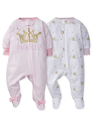 {"about_product": ["Includes two Sleep 'n Plays", "Front zipper down the center for easier changes with safety tab to promote comfort", "Footed for warmth, features long sleeves & comfy, relaxed fit. Perfect for newborns!", "Layer underneath for extra warmth with our Onesies bodysuits!", "One gold, one off-white with southwest art"], "product_description": "Our baby clothes are designed to keep your little one feeling at their best and to bring parents peace of mind. With easy-to-change features, safety features, and super soft fabrics, we offer baby girl clothes and baby boy clothes that are sure to fit any family’s needs. If you’re looking for baby sleepwear, we offer a wide range of baby pajamas, baby PJs, baby footies, baby sleepers, and baby fleece pajamas. We also offer baby socks and baby shoes. Our baby girl shoes are sure to add a special flair to her favorite baby outfits. We also offer many baby accessories that your little one will need, such baby sun hat, baby caps, baby hats, baby mittens, no scratch mittens, baby headbands, and baby girl headbands. Our baby bodysuits or baby Onesies® Brand bodysuits make excellent baby shower gifts, but we also offer baby gift sets. If you like to dress your baby with separates, be sure to check out our baby pants, baby shorts, baby shirts, baby tops, and baby bottoms. Our baby swimwear and baby swimsuits are a big hit too! If it’s bedding you’re looking for, we have crib sheets, changing pad, crib mobile, baby toys, baby blankets, baby gifts, swaddle blanket, and mattress protector. Our baby clothing sizing ranges from baby girl clothes preemie, baby boy clothes preemie, baby girl clothes newborn, baby boy clothes newborn, baby girl clothes 0-3 months, baby boy clothes 0-3 months, baby girl clothes 3-6 months, baby boy clothes 3-6 months, baby girl clothes 6-9 months, baby boy clothes 6-9 months, baby girl clothes 12 months, baby boy clothes 12 months, baby girl clothes 18 months, baby boy clothes 18 months, baby girl clothes 24 months, baby boy clothes 24 months, toddler girl clothes 2T, toddler boy clothes 2T, toddler girl clothes 3T, toddler boy clothes 3T, toddler girl clothes 4T, toddler boy clothes 4T, toddler girl clothes 5T, toddler boy clothes 5T. We have all your baby stuff covered, whether it’s baby boy stuff or baby girl stuff!", "product_information": {"ASIN": "B0B1W8B9YL", "Department": "baby-girls", "Manufacturer": "Gerber", "Customer Reviews": "4.7 4.7 out of 5 stars \n\n (23,754)", "Best Sellers Rank": "#10,302 in Clothing, Shoes & Jewelry (See Top 100 in Clothing, Shoes & Jewelry) #68 in Baby Boys' One-Piece Footies", "Date First Available": "September 30, 2019"}, "product_details": {"Origin": "Imported", "Fabric type": "100% Cotton", "Care instructions": "Machine Wash"}}