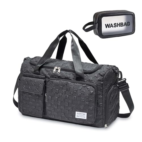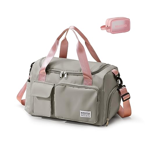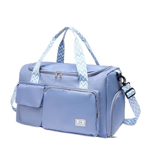 {"about_product": ["【SEPERATE TOILETRY BAG】:1. comes with a toiletry bag 2. comes with adjustable & detachable sling strap and unremovable handles.This is latest upgrade combination weekender travel bag set.", "【Lightweight Duffel Bag】The duffle bag is made of durable nylon fabric, water-resistant surface and linings with good breathability. Easy to wash this ultra lightweight quick-dry traval bag.Dimensions:H* W* T 28x50x21cm /11*19.6*8.2 inch,0.6kg weight.", "【Multi-purpose Design Overnight bag】Handbag or cross bag as you like,comfortable,adjustable strap.protect for your 7.9 inch ipad with a generously padded sleeve inside a separate zippered compartment. Multiple internal and external organizational pockets ensure you have a place for everything.", "【Multifunctional Tote Bag】Our gym bag can be used for various indoor and outdoor activities. It can be used as a dry and wet separate bag, gym bag, dance bag, luggage bag, beach bag, cheer bag, mommy bag, hospital bag, nurse bags, overnight bag, weekender bag, which is the perfect partner for short-distance, travel and air travel.", "【DRY WET SEPARATED GYM BAG】:The gym bag has seperate wet Pocket & toiletry bag,The high density water resistant material can help you to separate dry items and wet items."], "product_description": "Small Gym Bag for Women, Travel Duffle Bag Carry On Weekender Bag with Shoe Compartment", "product_information": {"ASIN": "B0CHRNL9HP", "Department": "gym bag for women", "Manufacturer": "BEULPTN", "Customer Reviews": "4.3 4.3 out of 5 stars \n\n (4,396)", "Best Sellers Rank": "#1,275 in Clothing, Shoes & Jewelry (See Top 100 in Clothing, Shoes & Jewelry) #5 in Sports Duffel Bags", "Product Dimensions": "1 x 1 x 1 inches", "Date First Available": "September 11, 2023"}, "product_details": {"ASIN": "B0CHRNL9HP", "Department": "gym bag for women", "Manufacturer": "BEULPTN", "Customer Reviews": "4.3 4.3 out of 5 stars \n\n (4,396)", "Best Sellers Rank": "#1,275 in Clothing, Shoes & Jewelry (See Top 100 in Clothing, Shoes & Jewelry) #5 in Sports Duffel Bags", "Product Dimensions": "1 x 1 x 1 inches", "Date First Available": "September 11, 2023"}}