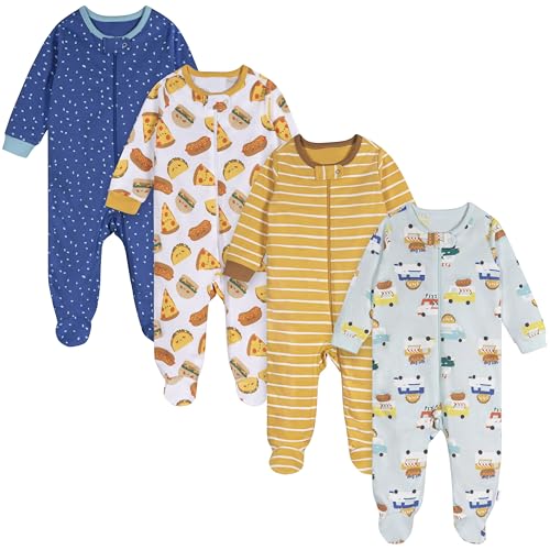 {"about_product": ["Includes four Sleep 'n Plays", "Made with soft, breathable cotton jersey that's gentle on sensitive skin", "Features long sleeves, a front zipper with safety tab for comfort & footed for warmth.", "Layer underneath with our Onesies bodysuits for extra warmth. Perfect for newborns!", "Blue, white, red & yellow color scheme with truck and stripes art"], "product_description": "Our baby clothes are designed to keep your little one feeling at their best and to bring parents peace of mind. With easy-to-change features, safety features, and super soft fabrics, we offer baby girl clothes and baby boy clothes that are sure to fit any family’s needs. If you’re looking for baby sleepwear, we offer a wide range of baby pajamas, baby PJs, baby footies, baby sleepers, and baby fleece pajamas. We also offer baby socks and baby shoes. Our baby girl shoes are sure to add a special flair to her favorite baby outfits. We also offer many baby accessories that your little one will need, such baby sun hat, baby caps, baby hats, baby mittens, no scratch mittens, baby headbands, and baby girl headbands. Our baby bodysuits or baby Onesies Brand bodysuits make excellent baby shower gifts, but we also offer baby gift sets. If you like to dress your baby with separates, be sure to check out our baby pants, baby shorts, baby shirts, baby tops, and baby bottoms. Our baby swimwear and baby swimsuits are a big hit too! If it’s bedding you’re looking for, we have crib sheets, changing pad, crib mobile, baby toys, baby blankets, baby gifts, swaddle blanket, and mattress protector. Our baby clothing sizing ranges from baby girl clothes preemie, baby boy clothes preemie, baby girl clothes newborn, baby boy clothes newborn, baby girl clothes 0-3 months, baby boy clothes 0-3 months, baby girl clothes 3-6 months, baby boy clothes 3-6 months, baby girl clothes 6-9 months, baby boy clothes 6-9 months, baby girl clothes 12 months, baby boy clothes 12 months, baby girl clothes 18 months, baby boy clothes 18 months, baby girl clothes 24 months, baby boy clothes 24 months, toddler girl clothes 2T, toddler boy clothes 2T, toddler girl clothes 3T, toddler boy clothes 3T, toddler girl clothes 4T, toddler boy clothes 4T, toddler girl clothes 5T, toddler boy clothes 5T. We have all your baby stuff covered, whether it’s baby boy stuff or baby girl stuff!", "product_information": {"ASIN": "B0DPRC2GKT", "Department": "baby-boys", "Manufacturer": "Onesies Brand", "Customer Reviews": "4.7 4.7 out of 5 stars \n\n (19,633)", "Best Sellers Rank": "#2,853 in Clothing, Shoes & Jewelry (See Top 100 in Clothing, Shoes & Jewelry) #4 in Baby Boys' One-Piece Footies", "Item model number": "4-pack Sleep 'N Play Footies", "Date First Available": "December 6, 2024"}, "product_details": {"Origin": "Imported", "Fabric type": "100% Cotton", "Care instructions": "Machine Wash"}}