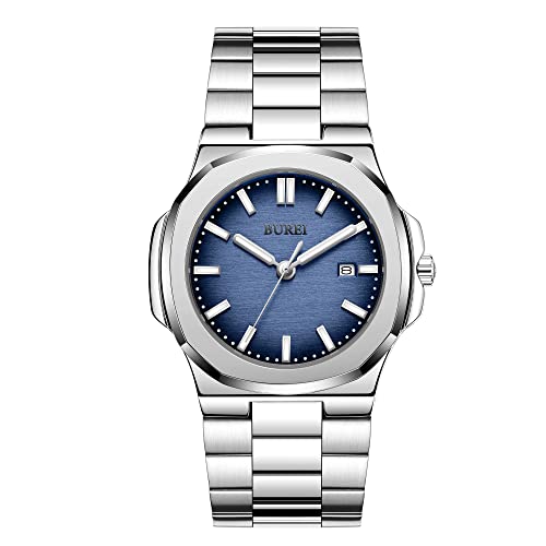 {"about_product": ["Simple Men's Watch: BUREI men's business watch is simple and fashionable, and it can stand the test of time. 44mm stainless steel round dial design, three-hand watch, simple and easy to read. This watch has a stylish design and fits any outfit, suitable for various occasions such as parties, daily life, outdoor activities, etc.", "High-quality Quartz Watch: BUREI men's classic watch adopts Japanese high-quality quartz movement, which keeps accurate time without worrying about time deviation. Comfortable and lightweight adjustable stainless steel strap allows your wrist to move freely. Hardened mineral crystal mirror prevents the watch from scratching, so that the watch always maintains a new look.", "3ATM Waterproof: BUREI case is perfectly sealed, our men's watch is waterproof up to 30M (3ATM). Waterproof for daily use, can withstand daily splashing or short immersion in water, but not suitable for swimming and showering and underwater activities. Perfect for a variety of leisure, outdoor and indoor activities or daily use.", "Men's Gift: Classic and simple appearance design, suitable for all kinds of clothing and occasions, can show the wearer's restrained taste and elegant temperament, and is the best choice to express respect and love to your father.", "What you get: Get BUREI business quartz watch, BUREI watch bag, BUREI watch manual; you can also enjoy our best quality service, BUREI offers 24 months warranty and 90 days 100% money back on every watch money guarantee. If you encounter any problems, please feel free to contact us. We will definitely help you solve the problem. Classic, stylish, elegant, easy to read, simple, minimalist, thinWe are always there, with you."], "product_description": "Founded in 1993, BUREI is dedicated to classic and elegant watch design. All their quartz watches use Japanese quartz movements, ensuring stable performance and accurate timekeeping, allowing you to easily capture every important moment. This particular watch is crafted entirely from stainless steel with scratch-resistant glass, providing a long-lasting wearing experience.", "product_information": {"ASIN": "B0B6ZHG4S7", "Department": "mens", "Manufacturer": "BUREI", "Customer Reviews": "4.4 4.4 out of 5 stars \n\n (734)", "Product Warranty": "For warranty information about this product, please click here", "Best Sellers Rank": "#21,936 in Clothing, Shoes & Jewelry (See Top 100 in Clothing, Shoes & Jewelry) #76 in Men's Wrist Watches", "Item model number": "BS0097", "Product Dimensions": "5.51 x 0.24 x 1.1 inches; 4.59 ounces", "Date First Available": "July 31, 2022"}, "product_details": {"Clasp type": "Buckle", "Item width": "6 millimeters"}}