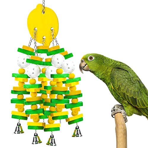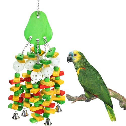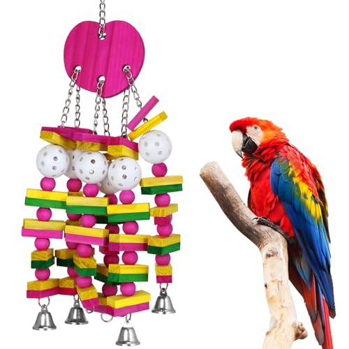 {"about_product": ["Unique Design: Our parrot toys for large birds have a blueberry-like design with many colored wooden blocks and plastic beads for the parrots to chew on, and the bell at the bottom is a great way to attract their attention and avoid damage to furniture or vegetable gardens.", "Safe Material: The bird toys for parrots are made of natural wood, which is safe, hard, durable, and more conducive to parrot sharpening beaks and gnawing. The surface is dyed with food coloring, non-toxic, harmless, you can give your parrot to chew safely.", "Large Size: Our parrot toy with bells are 55 cm/21.6 in long, suitable for large, medium birds, such as Anodorhynchus hyacinthinus, Ara ararauna, Ara glaucogularis, Ara militaris, Ara ambiguus, Ara macao, Ara chloroptera, Ara rubrogenys, Ara severa, Primolius couloni, Diopsittaca nobilis, Blue Crowned Conures, Gold Capped Conures, Macaws, Caiques, Ringnecks and more.", "Easy to Hang: There is a hook on the top of parrot chewing sticks toys, you can easily hang the bird toy by twisting the small screw on the hook. Of course, you can also hang it in other places such as your yard or eaves, it is undoubtedly a beautiful decoration.", "Perfect Gift: A large parrot toy easily grabs a parrot's attention. Colorful and wooden blocks and crisp bells excite them, keep them busy, and reduce damage to household items. You can also make it the perfect gift for family or friends who have parrots."], "product_description": null, "product_information": {"ASIN": "B0B8YBYFFT", "Color": "Blue", "Style": "Beads", "Material": "Wood", "Brand Name": "MEWTOGO", "Model Name": "av2023-MEWTOGO-en fr aras graupapageien und amazonaspapageien-0b18b6a8", "Item Weight": "0.68 Kilograms", "Manufacturer": "MEWTOGO", "Care Instructions": "Hand Wash", "Included Components": "Hook", "Breed Recommendation": "All Breed Sizes", "Date First Available": "August 8, 2022", "Target Audience Keyword": "birds", "Specific Uses for Product": "Entertainment", "Item Package Dimensions L x W x H": "10.94 x 9.96 x 2.8 inches"}, "product_details": {"ASIN": "B0B8YBYFFT", "Manufacturer": "MEWTOGO", "Customer Reviews": "4.5 4.5 out of 5 stars \n\n (2,307)", "Best Sellers Rank": "#11,068 in Pet Supplies (See Top 100 in Pet Supplies) #20 in Bird Toys", "Package Dimensions": "10.94 x 9.96 x 2.8 inches; 1.5 Pounds", "Date First Available": "August 8, 2022"}}