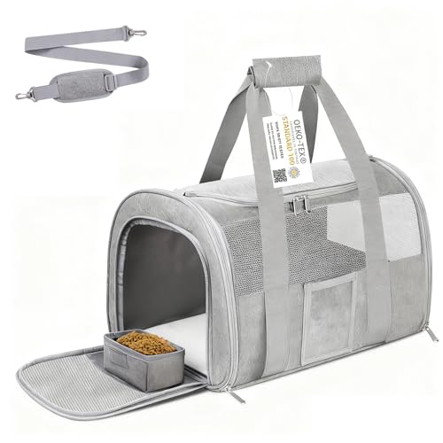 {"about_product": ["?[ Size] Size of our pet carrier: 17in(L)*12in(W)*11in(H) and Weight :2.03 LB. We recommended that the pet size you carried are within 15.7in*10.2in*10.2in and weigh less than 15LB(6.8KG). In order to give your pet more comfortable feeling.", "?[Safe Quality Material ] Our fabrics and parts are all gained the ‘’OEKO-TEX STANDARD 100’’ certification, which means our products are non-smelly, mild, non-stimulating, and friendly to your lovely cats & dogs. It’s our honor and duty to provide the best products to you and your pets.", "?[Special Design] The soft cat carrier contains aQ hidden foldable cat bowl, perfect for feeding cats on long trips. And retractable shoulder straps (with soft shoulder pads) can effectively relieve pressure on the shoulders when facing sideways.", "?[Breathable And Safe] 4 side new tear-resistant breathable mesh for better durability and air permeability. Top window design, and equipped with escapeproof safety bayonet, can observe the condition of pets at any time.", "?[Soft wool pad] Built-in 3 layers of detachable pet wool pad, can quickly and effectively absorb water, outer wool pad can be machine washable (Warning: Do not put the whole pad in the washing machine).", "✈[Versatile] Our cat carrier fits comfortably under most filght seats, like Southwest Airlines, American Airlines, Delta Airlines, Alaska Airlines, Jetblue,Frontier and so on. Perfect pet carrier for dogs airline approved"], "product_description": null, "product_information": {"ASIN": "B0BCV1Q959", "Size": "Medium", "Color": "Grey", "Style": "Modern", "Material": "Polyester", "Brand Name": "SECLATO", "Model Name": "cat carrier", "Item Weight": "1.8 Pounds", "Manufacturer": "Simpelg", "Number of Items": "3", "Item model number": "XC005-Grey", "Breed Recommendation": "Small", "Date First Available": "October 8, 2022", "Item Dimensions LxWxH": "17 x 12 x 11 inches", "Target Audience Keyword": "dogs, house-cats", "Item Package Dimensions L x W x H": "16.74 x 10.11 x 2.63 inches"}, "product_details": {"Brand": "SECLATO", "Color": "Grey", "Material": "Polyester", "Special Feature": "Airline Approved, Breathable, Collapsible, Durable, OEKO - TEX certification", "Product Dimensions": "17"L x 12"W x 11"H"}}