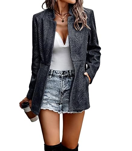 {"about_product": ["Size Guide: XS=US 0-2, S=US 4-6, M=US 8-10, L= US 12-14, XL=US 16-18, XXL=US 20-22. Please click the \"Size Chart\" tool before ordering, This is a body size chart. You can check last picture to see how to measure. If you are not sure about the size, please contact us without hesitation", "Basic work blazer jacket for women, featuring classic herringbone pattern & open front design. 6 colors: grey/ black/ apricot/ khaki/ pink/ purple available.", "Long sleeves. Stand collar with notch design. 2 side entry hand pockets for convenience. Slim fit. Made of soft and warm fabric, great for spring, fall and early winter.", "Perfect to match with jeans, leggings, light sweater or shirt as base layer for a professional look. The trendy blazer combines professionalism and comfort, allowing you to transition from work to after-work activities with ease.", "This dressy blazer coat in hip length, suitable for daily wear, office work, street wear, party, travel, dating, going out, festival, hanging out with friends, dinner, party, etc. Good addition to your wardrobe!"], "product_description": null, "product_information": {"ASIN": "B0BDDF8B9H", "Department": "womens", "Customer Reviews": "4.2 4.2 out of 5 stars \n\n (1,731)", "Best Sellers Rank": "#38,352 in Clothing, Shoes & Jewelry (See Top 100 in Clothing, Shoes & Jewelry) #35 in Women's Blazers & Suit Jackets", "Product Dimensions": "5 x 5 x 1 inches; 1 Pounds", "Date First Available": "September 7, 2022"}, "product_details": {"Origin": "Imported", "Fabric type": "Fabric: 100%Polyester. Lining: 100%Polyester", "Care instructions": "Soft machine wash"}}