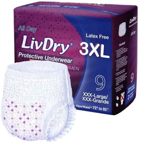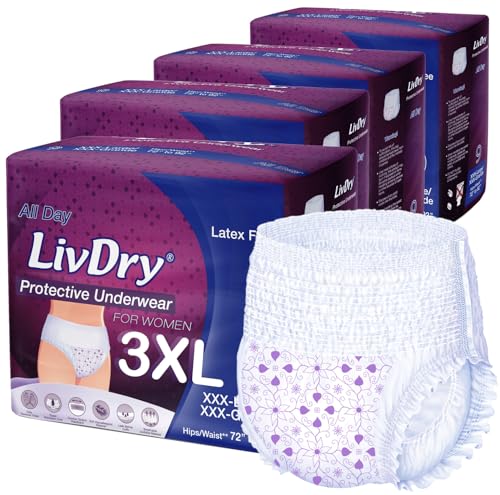 {"about_product": ["✔ ULTIMATE PROTECTION FOR WOMEN - LivDry's premium incontinence underwear is for women who experience moderate to significant bladder leaks or loss of control. These super absorbent incontinence products are designed for maximum comfort and protection.", "✔ MAXIMUM INCONTINENCE PROTECTION – Be protected all day or all night against bladder leaks or postpartum incontinence. High-absorbing core and fast-wicking liner. Maximum absorbency of 81 ounces (2401 mL). Independently lab-tested per ISO 11948-1.", "✔ LEAKAGE BARRIER CUFF KEEPS YOU DRY – LivDry women incontinence underwear feature a comfortable elastic leak-barrier leg cuff with gathered bands. See sizing chart for waist, and the leg cuffs help reduce leaks while sleeping or moving.", "✔ SUPER ABSORBENT DIAPERS - LivDry ultimate women adult diapers are so absorbent you may not need bed pads. The proprietary super absorbent gel core holds more fluid to help reduce frequency of changes, for fewer diapers used daily or nightly.", "✔ EXTRA SOFT MATERIAL FOR YOUR COMFORT – Designed for feminine skin, LivDry's women diapers feature a soft, cloth-like, latex-free material with stretch panels that contour to your body for a comfortable fit. Plus, tear-away sides allow for easy removal."], "product_description": null, "product_information": {"ASIN": "B0BDGG7V6N", "Manufacturer": "LivDry", "Customer Reviews": "4.2 4.2 out of 5 stars \n\n (297)", "Best Sellers Rank": "#25,883 in Health & Household (See Top 100 in Health & Household) #80 in Incontinence Protective Briefs & Underwear", "Product Dimensions": "13 x 13 x 4 inches; 1.85 Pounds", "Date First Available": "October 3, 2022"}, "product_details": {"Brand": "TYE Medical", "Color": "White", "Number of Items": "1", "Age Range (Description)": "Adult", "Incontinence Protector Type": "Adult Incontinence Underwear"}}
