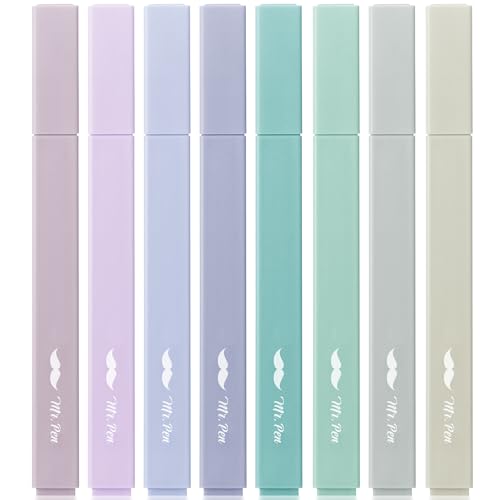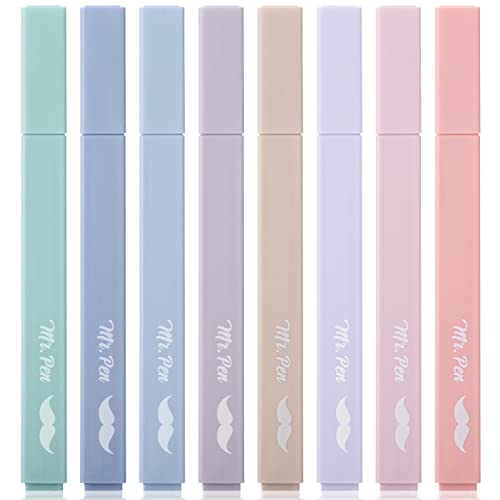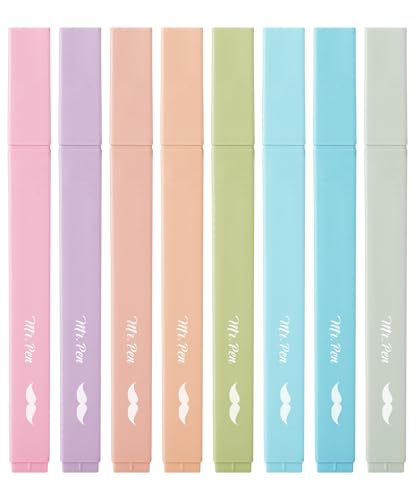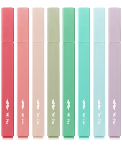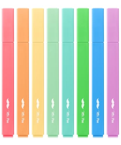 {"about_product": ["Make your notes and papers pop with our soft and gentle highlighters! This package includes 8 highlighters in assorted colors. Our highlighters are perfect for making your work and school life a little bit brighter.", "The highlighters feature durable, quick-drying ink to prevent smears and smudges. The ink is also resistant to fading so your work stays clean and clear for longer.", "Our highlighters are comfortable and easy to hold without a sore hand & don't roll around while using. The versatile chisel tip efficiently produces wide and narrow lines.", "Mr. Pen highlighters are perfect for highlighting your scriptures, notes, journals, or any books you want to read with bright and vibrant colors.", "These cute highlighters are suitable for school, college, home, office, even travel diary, schedule, work, study, notes, etc. They are also wonderful gifts for family and friends."], "product_description": null, "product_information": {"ASIN": "B0BG53HYHW", "Size": "8 Pack", "Brand": "Mr. Pen", "Color": "Candy Colors", "Grip Type": "Smooth", "Ink Color": "Pastel", "Line Size": "0.7mm", "Point Type": "Chisel", "Item Weight": "3.52 ounces", "Manufacturer": "Mr. Pen", "Material Type": "Plastic", "Number of Items": "8", "Best Sellers Rank": "#23 in Office Products (See Top 100 in Office Products) #1 in Liquid Highlighters", "Item model number": "LEGG004M237", "Package Dimensions": "5.26 x 4.17 x 0.55 inches", "Date First Available": "September 22, 2022", "Manufacturer Part Number": "LEGG004M237"}, "product_details": {"Brand": "Mr. Pen", "Ink Color": "Pastel", "Point Type": "Chisel", "Number of Items": "8", "Recommended Uses For Product": "Bible, Coloring, Drawing, Note Taking, School"}}