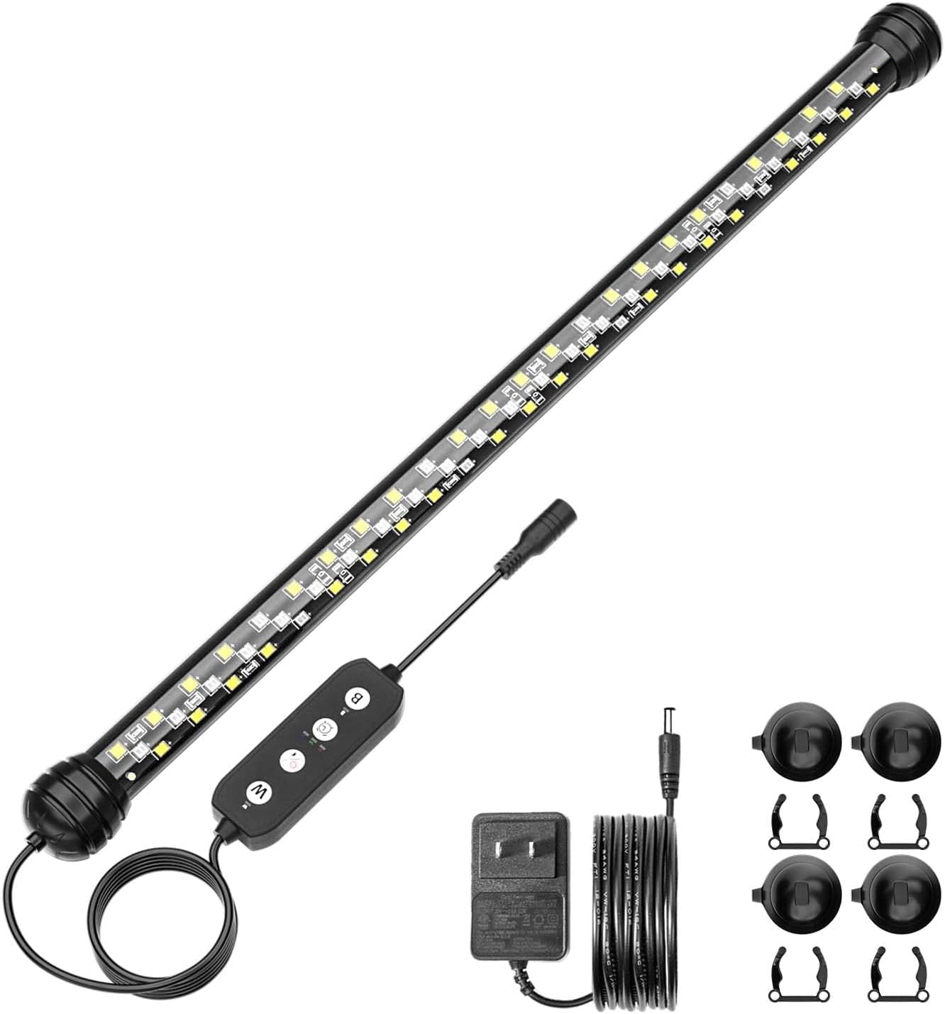 {"about_product": ["★DIY MODE: Time, Colour and Brightness 3 setting choose. Timing(Timer control key): Built-in timer for 6 hours, 10 hours, or 12 hours lighting; Brightness/On-Off key: 10 level brightness and Switch function. Color(W/B key): 3 lighting modes, White/Blue/Red/Green, White/Red/Green, or only Blue", "★Submersible&Powerful Sucker: This aquarium plant light with IP68 waterproof rating, 3 layers encrypted design, it can be fully submerged in the water. With powerful silicone movable suction cups, More bigger and powerful than others small rubber, No Worry About the Drop Off. Easy to install on most of glass or acrylic aquarium tanks, mount under the hood, on the transparent lid top, tank bottom, inside or outside of the tank", "★Full Spectrum Aquarium Light: 6500k white light, Red light, Green light and blue light, which is helpful fish and aquatic plants growth, fit for all fresh water tanks. the colour rendering index up to 89% which is similar to natural light, produce special lighting to your aquascape", "★High-quality Led: Using high-quality SMD2835 led chips. Compared with other tank lights, up to 3 columns of led chips, they are more compact and beautiful. And no need to worry about the over bright issues, 10 level intensities you can adjust", "★Auto On/Off & Power Off Memory function: After Timer, It will come on and go off at the same time every day. Power off memory function. In case of power failure, the setting remains the same as before, and the start time will restart counting after the power is turned on. PS: The light rises slowly in 15 minutes and gradually decreases in the last 15 minutes. It is very friendly to fish"], "product_description": null, "product_information": {"ASIN": "B0BKSY2H92", "Size": "15 inch for 16-27inch tank", "Brand": "SEAOURA", "Color": "Blue, Green, Red, White", "Shape": "Drop", "Style": "Modern", "Voltage": "20 Volts (DC)", "Wattage": "9 watts", "Amperage": "0.45 Amps", "Material": "Plastic", "Beam Angle": "10 Degrees", "Brand Name": "SEAOURA", "Brightness": "765 Lumen", "Model Name": "Aquarium light", "Finish Type": "Black Painted or Powder Coated", "Item Weight": "10.5 ounces", "Manufacturer": "SEAOURA", "Power Source": "Corded Electric", "Bulb Features": "Dimmable", "Mounting Type": "Suction Cup Mount", "Shade Material": "ABS, Plastic", "Number of Items": "1", "Color Temperature": "6500 Kelvin", "Item model number": "SR-619", "Light Source Type": "LED", "Product Dimensions": "7.09\"L x 0.67\"W x 0.67\"H", "Included Components": "Light inlcuded, Power Cable, Suction Cups, User Manual", "Date First Available": "October 30, 2022", "Light Output Maximum": "765 Lumens", "Light Source Wattage": "9 Watts", "Warranty Description": "1-month free return.", "Color Rendering Index": "89.00", "Are Batteries Included": "No", "Item Dimensions LxWxH": "1.2 x 7 x 1.2 inches", "Number of Light Sources": "1", "Specific Uses for Product": "Indoor use only", "Item Package Dimensions L x W x H": "16.65 x 2.87 x 1.73 inches", "Maximum Compatible Light Source Wattage": "90 Watts"}, "product_details": {"Color": "Blue, Green, Red, White", "Shape": "Drop", "Material": "Plastic", "Finish Type": "Black Painted or Powder Coated", "Light Source Type": "LED"}}
