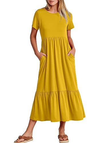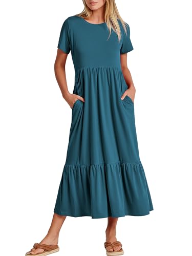 {"about_product": ["Size - S=US(4-6), M=US(8-10), L=US(12-14), XL=US(16-18), XXL=US(20-22), see details in rich description.", "features - short sleeve,crewneck,maxi dress,tiered flowy skirt,basic cute beach dress with pockets.", "Occasions - Suitable for beach,travel, work, daily, casual and party, easily dress up or down!", "Highlights - This Flowy long Dress With Cute tiered skirt ,flounces on the casual style and two handy side pockets,which are Perfect match for this dress.A nice simply dress for summer! Classic round neck, The midi length with tiered design makes the sundress less monotonous.", "Washing - Machine washable/ Hand wash, not bleach, hang or line dry, low iron when necessary."], "product_description": null, "product_information": {"ASIN": "B0BNDHZ5SP", "Department": "womens", "Customer Reviews": "4.3 4.3 out of 5 stars \n\n (6,350)", "Best Sellers Rank": "#19,954 in Clothing, Shoes & Jewelry (See Top 100 in Clothing, Shoes & Jewelry) #234 in Women's Dresses", "Item model number": "A727-ganlanlv", "Date First Available": "January 5, 2023"}, "product_details": {"Neck style": "Crew Neck", "Fabric type": "60% Polyester, 35% Rayon, 5% Spandex", "Closure type": "Pull On", "Care instructions": "Machine Wash"}}