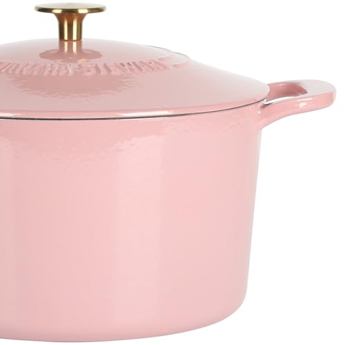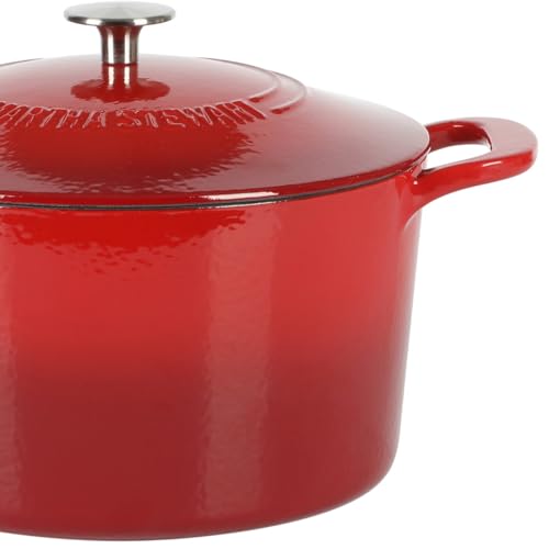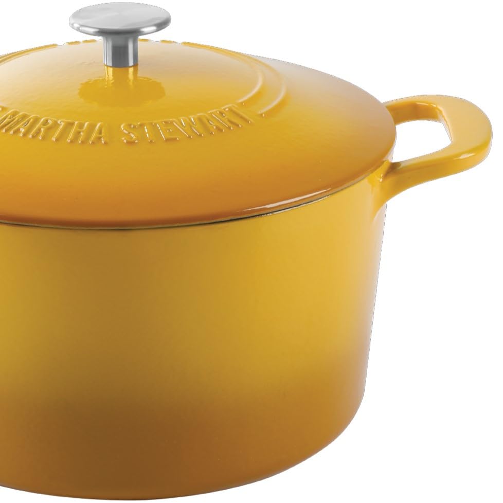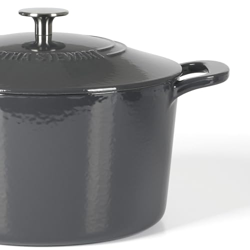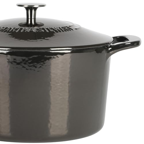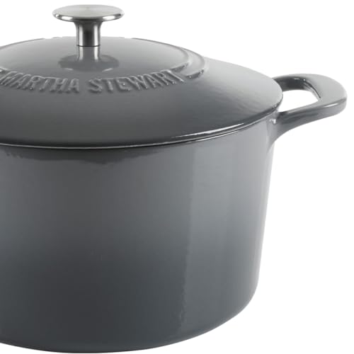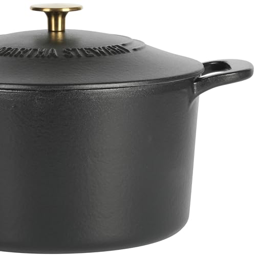 {"about_product": ["WHAT'S IN THE BOX: One 7-quart enameled cast iron Dutch oven with lid and stainless steel knob. The perfect Dutch Oven pot for bread baking, wedding registry gift, and more", "ONE-POT SHOWSTOPPER: Durable cast iron construction distributes and retains heat evenly - perfect for slow simmers, braising, making soups and stews, baking casseroles and bread, and more", "BEAUTIFUL STATEMENT PIECE: Vibrant enameled exterior complimented by a gold-colored knob creates a lovely presentation on any table or kitchen", "SMOOTH INTERIOR: Enameled interior is easy to clean and scratch-resistant", "GENEROUS HANDLES: Wide handles allow easy transport from the stove to the oven to the table"], "product_description": "The Martha Stewart Gatwick 7-quart Enameled Cast Iron Dutch Oven with Lid provides versatility and durability while making all kinds of delicious recipes every day. Crafted from durable cast iron, this piece distributes and retains heat evenly to slow cook stews, braise meats, bake casseroles, and more. The vibrant enamel finish resists stains for elegant presentation and easy cleanup. Sturdy handles offer balance and support when serving from oven to table. The lid has raised grooves to redirect moisture back on the food for tender, flavorful results. Safe in the oven (up to 450°F) and on all cooking surfaces, including induction stoves, this Dutch oven offers style and performance to inspire any home cook to explore and do more in the kitchen. Hand wash only. \n \nEmbrace thoughtfully designed home essentials from America’s most trusted lifestyle expert, Martha Stewart. Step into her exquisite and iconic world filled with a curation of high-quality products to prep, cook, bake, serve, and enjoy. All crafted to elevate everyday homemaking and seasonal entertaining, these kitchen and tabletop pieces blend style and performance, inspiring avid hosts and home cooks to set stylish tables, serve up delicious meals, and create spectacular memories.", "product_information": {"UPC": "085081204721", "ASIN": "B0BNK26M82", "Brand": "Martha Stewart", "Color": "Black Matte", "Shape": "Round", "Capacity": "7 Quarts", "Material": "Cast Iron", "With Lid": "Yes", "Finish Type": "Enameled", "Item Weight": "17.31 pounds", "Is Oven Safe": "Yes", "Lid Material": "Cast Iron", "Manufacturer": "Gibson Overseas, Inc", "Best Sellers Rank": "#2,802 in Kitchen & Dining (See Top 100 in Kitchen & Dining) #23 in Dutch Ovens", "Item model number": "97291.02R", "Is Dishwasher Safe": "No", "Temperature Rating": "500 Degrees Fahrenheit", "Date First Available": "November 28, 2022", "Product Care Instructions": "Hand Wash Only", "Global Trade Identification Number": "00085081204721"}, "product_details": {"Brand": "Martha Stewart", "Color": "Black Matte", "Capacity": "7 Quarts", "Material": "Cast Iron", "Finish Type": "Enameled"}}