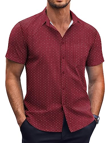 {"about_product": ["【Wrinkle Free】These mens dress shirts are made of lightweight, durable soft fabric, which is smooth and skin-friendly, making you comfortable to wear. Not easy to wrinkle, not easy to pilling. It is an essential basic shirt in your wardrobe.", "【Printed Shirt Design】This casual polka dot shirt is designed with a unique print, regular fit, short sleeve, turn down collar, button down closure and 1 chest pocket.", "【Easy to Match】Men's business casual shirt can be paired with dress pants, belt, blazer, suit vest for a formal look or paired with casual shorts, jeans, slacks and chinos for a stylish casual style.The classic polka dot shirt is always in fashion.", "【Occasions】This print dress shirt is suitable for any occasion. For formal, such as business, meeting, work, dinner, wedding, banquet and graduation. Perfect for home, outdoor, holiday, travel, dating, party, beach, mall, street wear and daily casual wear. It is also a perfect gift for families and friends.", "【Note】Machine washable, low iron if necessary. Please read the size information of product description in order to choose your own size. If you like to be looser, please choose next size."], "product_description": null, "product_information": {"ASIN": "B0CXLSDKSK", "Department": "mens", "Customer Reviews": "4.3 4.3 out of 5 stars \n\n (1,421)", "Best Sellers Rank": "#19,237 in Clothing, Shoes & Jewelry (See Top 100 in Clothing, Shoes & Jewelry) #212 in Men's Button-Down Shirts", "Date First Available": "November 29, 2022"}, "product_details": {"Origin": "Imported", "Fabric type": "100% Polyester", "Closure type": "Button", "Care instructions": "Machine Wash"}}