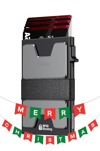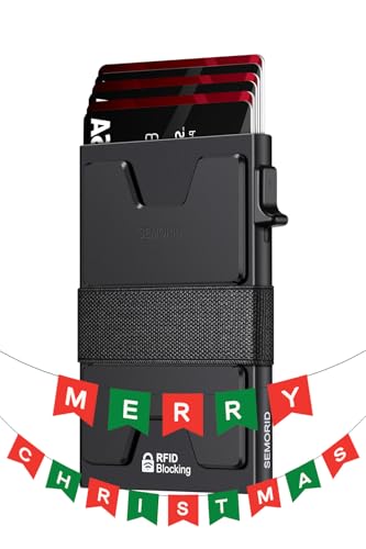 {"about_product": ["? QUICK ACCESS & LARGE CAPACITY HOLD UP 1-12 CARDS: This mens wallet designed with enhanced enjection mechanism button to pop up cards quickly. The aluminum card holder holds 4-6, depends on the number of embossed cards, and the expandable metal backplate holds 5-6 additional cards. The actual capacity depends on the card thickness.", "? ULTRA THIN PROFILE (SLIM WALLET FOR MEN): The minimalist tactical wallet is very thin and can be carried comfortably in a pocket. The aluminum cardholder size is 3.9*2.5*0.5in,weight only 2.6oz. And expandable backplate designed for additional storage. Ditch the bulk, less is more.", "? RFID & NFC BLOCKING: This smart wallet use advanced aluminium technology to protect your cards from unauthorized and contactless scanning. Stop thieves from cloning your bank cards and prevent data theft.", "? KEEP CARD TIGHTLY: Our pop up wallet with inside silicone strip that keeps your cards to be held tightly compared with normal felt. No worry cards will fall out.", "? PERFECT PRESENT IDEA: Our minimalist wallets packed with a pretty box. Aluminum wallet for men is a great present for boyfriend, brother, son, husband, dad, or your male friends on christmas, birthdays, anniversaries, and father's Day.", "?? QUALITY SERVICE: If for any reason you're unsatisfied with the card holder wallet, please to contact us, we will get back to you within 24 hours and make things right for you."], "product_description": null, "product_information": {"ASIN": "B0BNXHJJX3", "Department": "Men", "Item Weight": "2.6 Ounces", "Manufacturer": "SEMORID", "Best Sellers Rank": "#721 in Clothing, Shoes & Jewelry (See Top 100 in Clothing, Shoes & Jewelry) #10 in Men's Wallets", "Item model number": "SMZF001", "Product Dimensions": "0.5 x 2.5 x 3.9 inches"}, "product_details": {"Brand": "SEMORID", "Color": "Black-A Button", "Style": "Modern", "Pattern": "Expandable Backplate Extra Storage", "Material": "Aluminum"}}