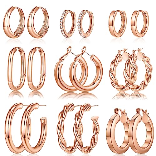 {"about_product": ["AFTER SALES SERVICE: If you encounter size and quality problems when using this hoop earrings, please don't worry, please contact us", "9 PAIRS of EARRINGS under $16: Yesteel Brand provides women with trendy and valuable jewelry at nice prices. You could get 9 pairs of good quality earrings from us at the price", "HYPOALLERGENIC MATERIAL: Chunky 14k-gold-plated hoop earrings are plated with high quality 14k-gold-plated, nickel free, lead free, and hypoallergenic. No tarnish, No irritation for sensitive ears", "DIFFERENT SIZE: 9 pairs of earrings with different shapes in one package. Combined and matched to wear on different parts of the ear. A statement piece that looks amazing, Great earrings in your collection", "GIFTS FOR WOMEN: Comes with gift box, trendy and elegant chunky 14k-gold-plated hoop earrings are packaged and ready for giving. Perfect gifts for women friends and family on Birthday, Mothers Day Gifts, Christmas Gifts"], "product_description": null, "product_information": {"ASIN": "B0B2NPYPTV", "Department": "womens", "Customer Reviews": "4.4 4.4 out of 5 stars \n\n (4,148)", "Best Sellers Rank": "#180 in Clothing, Shoes & Jewelry (See Top 100 in Clothing, Shoes & Jewelry) #1 in Women's Hoop Earrings", "Date First Available": "May 30, 2022"}, "product_details": {"Gem type": "No Gemstone", "Material": "Brass", "Metal type": "Brass", "Back Finding": "Hinged Hoop", "Earring design": "Hoop", "Item type name": "Hoop Earrings"}}