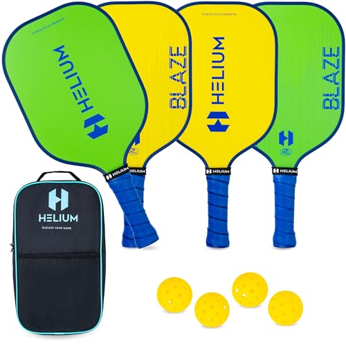 {"about_product": ["【Complete Set to Get You Playing】 The Paragon 4 pack pickleball paddle set comes with everything you need to start playing Pickleball. Play doubles or singles with your friends and family and conveniently carry everything with you to the pickleball court in the included sports bag.", "【Balanced Paddle, Premium Construction】 Each Paragon pickleball paddle is made with a fiberglass face which generates more control and power in each swing. The polypropylene honeycomb core makes the paddle light. Strike the optimal balance of power and control with the dynamic Paragon pickleball paddle.", "【Conquer the Pickleball Court】 This pickleball set of 4 elevates all play styles. The paddles have a surface area of 15.9” x 7.75” which gives the paddle a large sweet spot for better control on every hit. Perfect for schools, recreation centers, community centers, families, and HOA's.", "【Premium Comfort Grip】 Play longer with the non slip, standard 4.5 inch circumference, high comfort tactile grip. Each pickleball paddle set has a perforated sweat absorbent grip on each paddle making it even easier to play more pickleball games.", "【Choose Your Favorite Paddle】 Our paddle set has 4 vibrant sporty colors so you can play with your favorite paddle. Get to your nearest court and Elevate Your Game with Helium!"], "product_description": "", "product_information": {"UPC": "850024925915", "ASIN": "B0BRQNVQMT", "Size": "12mm Honeycomb Core", "Brand": "Helium", "Color": "Paragon", "Sport": "Pickleball", "Style": "Paragon", "Material": "Fiberglass", "Grip Size": "4 1/2 inches", "Brand Name": "Helium", "Item Weight": "7.7 Ounces", "Part Number": "Paragon", "Skill Level": "All", "Manufacturer": "Helium USA LLC", "Frame Material": "Polymer Honeycomb Core", "Package Weight": "1.24 Kilograms", "Shaft Material": "fiberglass", "Suggested Users": "unisex-adult", "Best Sellers Rank": "#3,738 in Sports & Outdoors (See Top 100 in Sports & Outdoors) #13 in Pickle-Ball Paddles", "Product Dimensions": "15.9\"L x 7.75\"W", "Included Components": "1 Sport Bag, 4 Outdoor Pickleballs (Yellow, 40 Holes), 4 USAPA Fiberglass Paragon Pickleball Paddles", "Date First Available": "January 5, 2023", "Warranty Description": "2 year manufacturer for defective parts or materials.", "Item Dimensions LxWxH": "15.9 x 7.75 x 0.04 inches", "Age Range (Description)": "Adult", "Sport Racket String Installation": "Unstrung", "Item Package Dimensions L x W x H": "17.99 x 10.67 x 3.94 inches"}, "product_details": {"Size": "12mm Honeycomb Core", "Brand": "Helium", "Sport": "Pickleball", "Material": "Fiberglass", "Grip Size": "4 1/2 inches", "Item Weight": "7.7 Ounces", "Skill Level": "All", "Frame Material": "Polymer Honeycomb Core", "Shaft Material": "fiberglass", "Age Range (Description)": "Adult"}}