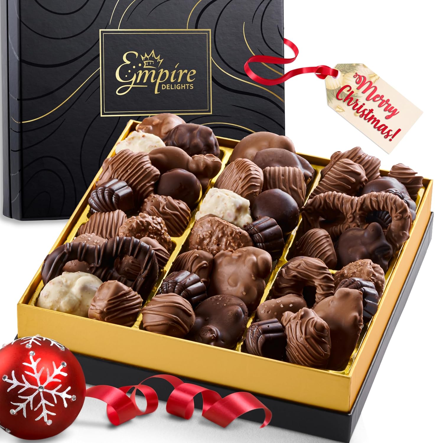 {"about_product": ["Luxury Taste Experience: Smooth, creamy milk chocolates; crispy layers of crunch and melt-in-your-mouth caramels in a luxurious chocolate box.", "16 Assorted Flavors: Discover an explosion of mouthwatering flavors inside this chocolate gift basket. An utterly divine selection of 32 chocolates in 16 sensational flavors transport you to chocolate paradise", "Stunning Magnetic Box: Beautifully presented in a magnetic box and secured with an elegant ribbon bow, this box of chocolate captivates long before the first bite", "Gift-Ready: Spoil that special someone with a delightful chocolate box. Whether they love milk, dark, white, or raspberry, these chocolates for gifting are sure to surprise on every bite", "Carefully Packaged: Our gourmet gift baskets arrives ready to indulge. There may be enough to share, but we won’t blame you if there’s nothing left before guests even take a seat"], "product_description": null, "product_information": {"UPC": "702338679520", "ASIN": "B0BSP5WMT4", "Units": "1 Count", "Customer Reviews": "4.3 4.3 out of 5 stars \n\n (1,454)", "Best Sellers Rank": "#1,102 in Grocery & Gourmet Food (See Top 100 in Grocery & Gourmet Food) #14 in Candy & Chocolate Gifts", "Package Dimensions": "9.37 x 9.29 x 2.52 inches; 2.27 Pounds"}, "product_details": {"Brand": "Empire Delights", "Flavor": "Chocolate", "Occasion": "Birthday, Christmas, Holiday, Thank You", "Item Form": "Bar", "Chocolate Type": "Milk"}}