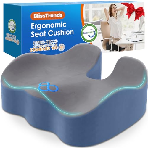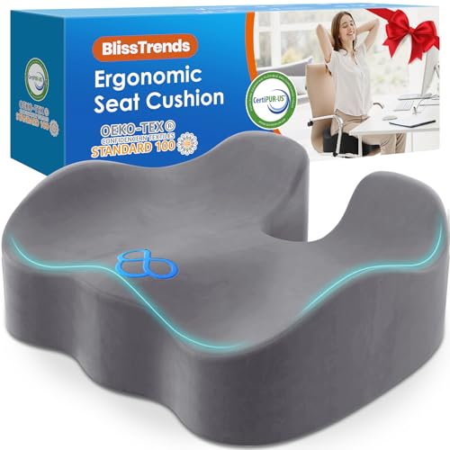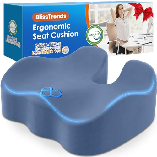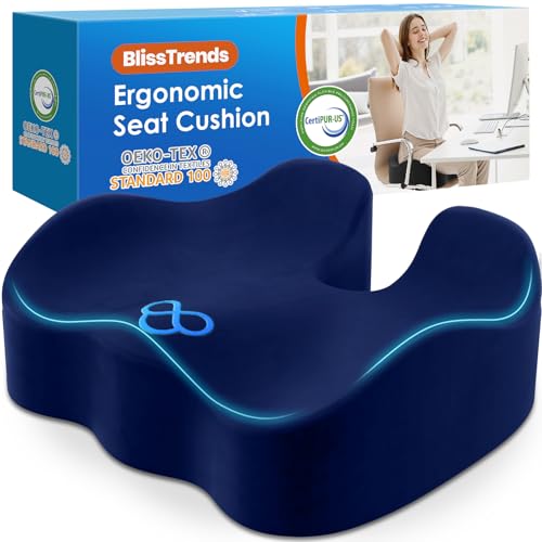 {"about_product": ["[Thick Cushion] The seat cushion measures 18.11\" x 16.14\" x 4.76\" and includes about 4.7\" thick soft memory foam gently conforms to your body, giving you a comfortable experience. The shape of the chair cushion is ergonomically designed to hold up the thighs and hips, effectively helping to alleviate the discomfort caused by sitting for long periods of time", "[Advanced Design] Our seat cushion is made of high-density memory foam. Super soft velvet cover with high quality embroidery for a premium look. The cover is equipped with a high-quality smooth zipper and is removable and machine washable. The bottom of the seat cushion has a special non-slip design, so you don't have to worry about the cushion sliding", "[Tailbone Pain Relief] The seat cushion's unique cocked edge design provides adequate support for the legs and hips, effectively reducing sciatica, tailbone, back pain, leg numbness and hip pain. In addition, this thick chair cushion also helps to improve posture and relieve sedentary fatigue", "[Practical Presents] The seat cushion is both soft and supportive, not easily dented, and suitable for sedentary people. Perfect as a practical gift for your family, friends, bosses, clients and colleagues", "[Suitable For Most Chairs] This seat cushion is thick and is sized for most chairs, perfect for office, home, travel, game stands, car seats or wheelchairs"], "product_description": null, "product_information": {"ASIN": "B0BZCJRJML", "Size": "Large", "Brand": "BlissTrends", "Color": "Black", "Shape": "Semicircular", "Pattern": "Solid", "Use for": "Feet, Legs, Whole Body", "Variety": "Memory Foam,Seat Cushion", "Material": "Polyester, Polyurethane Foam", "Unit Count": "1.0 Count", "Fabric Type": "100% Polyurethane Foam & 100% Polyester", "Item Weight": "1.92 pounds", "Manufacturer": "BlissTrends", "Fill Material": "Polyurethane (PU)", "Special Feature": "Removable", "Number of Pieces": "1", "Best Sellers Rank": "#235 in Office Products (See Top 100 in Office Products) #5 in Back Cushions & Seat Cushions", "Item model number": "Lumbalkissen 05", "Product Dimensions": "18.11\"L x 16.14\"W", "Date First Available": "May 1, 2023", "Age Range (Description)": "Adult", "Item Firmness Description": "Soft", "Product Care Instructions": "Machine Wash", "Specific Uses For Product": "Back Pain Relief, Comfort, Posture, Supportiveness", "Recommended Uses For Product": "Driving, Reading, Sitting, Studying, Traveling"}, "product_details": {"Size": "Large", "Brand": "BlissTrends", "Color": "Black", "Fill Material": "Polyurethane (PU)", "Special Feature": "Removable"}}
