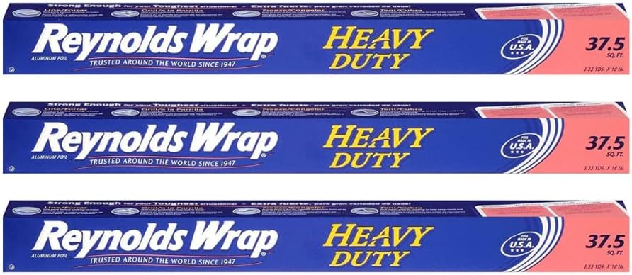 {"about_product": ["Heavy Duty Reynolds Foil—This package contains one Reynolds Wrap heavy duty foil roll measuring 37.5 feet long by 18 inches wide", "Aluminum Foil—Backed by over 70 years of quality & strength, Reynolds Foil is the go-to foil for home & professional cooks seeking tools for easy prep, cooking & cleanup", "Heavy Duty Gauge—The same Reynolds quality foil with a thicker, more durable gauge for added strength & temperature resistance", "Locks In Flavor—Use this versatile kitchen foil to seal in heat & moisture to create flavorful, juicy meals every time", "Covers, Packages & Stores—Easy Tear Edge lets you cut the perfect size piece of foil for covering pans to avoid messy splatters, creating a packet to lock in maximum flavor or simply storing leftovers"], "product_description": "Reynolds Wrap Heavy Duty Aluminum Foil is your go-to kitchen essential for a wide range of cooking, baking, and food storage needs. Designed with extra strength and durability, this heavy-duty foil stands up to high heat, making it ideal for grilling, roasting, and lining baking pans. It helps prevent sticking and makes cleanup a breeze—just line your pans and toss the mess away. Whether you’re covering dishes, wrapping leftovers, or preparing meals for the oven or grill, Reynolds Wrap offers dependable performance you can trust. It’s also a smart choice for freezer storage—its heavy-duty construction provides exceptional protection against freezer burn and helps keep your food fresh longer. Best of all, it prevents sticking, so frozen items are easy to separate when you're ready to use them.", "product_information": {"ASIN": "B0BZDS7V52", "Size": "Pack - 3", "Brand": "Reynolds", "Material": "Aluminum", "Item Weight": "2 pounds", "Manufacturer": "Reynolds", "Number of Items": "3", "Is Microwaveable": "No", "Best Sellers Rank": "#60,286 in Health & Household (See Top 100 in Health & Household) #46 in Aluminum Foil Wrap", "Product Dimensions": "450 x 18 x 0.04 inches", "Date First Available": "July 21, 2022", "Recommended Uses For Product": "Cooking, Food Preservation, Food Storage, Grilling"}, "product_details": {"Size": "Pack - 3", "Brand": "Reynolds", "Material": "Aluminum", "Is Microwaveable": "No", "Recommended Uses For Product": "Cooking, Food Preservation, Food Storage, Grilling"}}