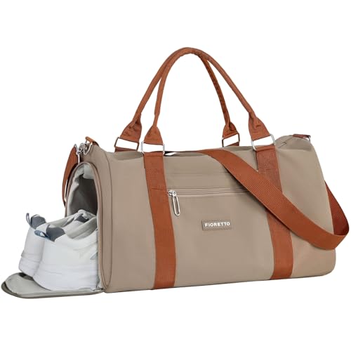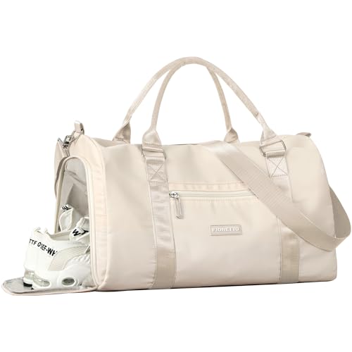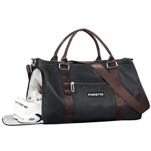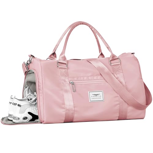 {"about_product": ["?????? ??? ???: The gym bag for women is made of high density fabric & lining which is robust while lightweight. Ideal for your long-term use", "??? ?????? & ???? ???????????: The wet pocket is perfect for storing sweaty clothes or towels after your workout; The shoe compartment allows you to easily store and access your gym shoes without dirtying the main compartment", "????????-???????? ?????? ???: The size of this travel bag is 17.7×10.2×7.5'', ideal as a carry on bag. With additional adjustable shoulder strap & integrated trolley sleeve, the tote bag can be carried with you everywhere, making your travel a breeze", "???????? ???????: The duffle bag has many practical pockets for your easy organization: 1 front zippered pocket to store mobile phones; 2 side pocket for your umbrella; 2 built-in pockets for wallets; 1 rear trolley case pocket designed for store tickets", "??????? ?????????? ?????????: Our bag is a great choice to be used in various ways: gym, workout, sports, dance, ballet, swim, travel, weekender, overnight, hospital and etc"], "product_description": null, "product_information": {"ASIN": "B0BZZ4BMM4", "Department": "Women", "Item Weight": "566 Grams", "Manufacturer": "FIORETTO", "Best Sellers Rank": "#6,282 in Clothing, Shoes & Jewelry (See Top 100 in Clothing, Shoes & Jewelry) #10 in Sports Duffel Bags", "Item model number": "FD3W23014", "Product Dimensions": "17.7 x 10.2 x 7.5 inches", "Number of Compartments": "1"}, "product_details": {}}