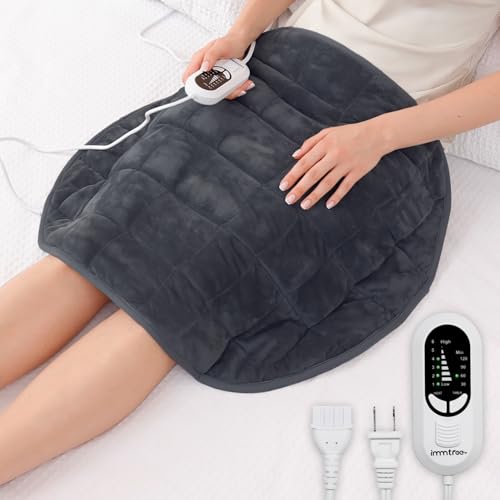{"about_product": ["Weighted Heating Pad for Deeper Pain Relief: By adding extra weight, this heating pad not only provides more stable heat to target areas of your body but also feels like gentle hands massaging you. It deeply promotes blood circulation and relaxes your muscles", "29*24Inches Perfectly Covering: We have increased the size to perfectly cover your back, abdomen, lap, neck, and shoulder. With this larger coverage, you'll experience additional warmth around your waist, making spasms more manageable", "Cozy Soft Crystal Velvet: The crystal velvet has denser fibers per unit, making it more skin-friendly. Additionally, the fabric layer is thicker and softer. Moreover, this premium fabric maintains its excellent feel even after washing repeatedly", "Convenient Time and Temp Set: With just one button for temperature and one for time settings, ranging from low to high, it's incredibly easy to use. Choose from 6 heat settings (up to 140°F) and 4 time settings (30-120 minutes) to suit your preferences", "Warm Affection: Give a plush weighted blanket to your loved ones. It's not just a blanket, but also a form of care and comfort."], "product_description": null, "product_information": {"ASIN": "B0C148JW1X", "Item Weight": "7 pounds", "Manufacturer": "immtree", "Best Sellers Rank": "#22,507 in Home & Kitchen (See Top 100 in Home & Kitchen) #47 in Weighted Blankets", "Item model number": "TK-HP2922WE", "Product Dimensions": "29 x 24.02 x 4 inches", "Date First Available": "March 31, 2023"}, "product_details": {"Brand": "immtree", "Color": "Grey", "Material": "Velvet", "Item Weight": "7 Pounds", "Special Feature": "Velvet"}}