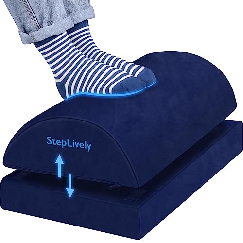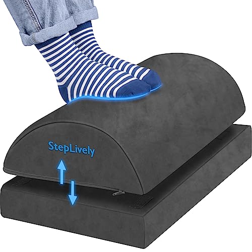 {"about_product": ["【Comfortable Experience】Steplively foot rest has two layers: the lower layer is 2.0\" thick, and the upper layer is 3.7\" thick. The ergonomic design of the foot rest gives you freedom to choose the proper height according to your needs and to better relieve the pressure on your limbs for long periods of sitting", "【Adjustable Height】StepLively foot rest has two-piece removable footrest with magic tapes between the upper and lower layers so that you can adjust the height of the foot rest according to your usage needs. When you want to add the height of the foot stool, you only need to pull the zipper and magic tapes between the two layers of the foot rest to switch the thickness for a higher height. Want it lower? Simply remove the bottom flat piece", "【High Quality】The core of StepLively foot pillow is made of high-quality foam, which is supportive and does not easily collapse or lose shape. The bottom of the foot pillow is made with a non-slip design, which ensures that the foot pillow does not easily shift when being used. The cover of the foot pillow is made of machine washable velvet fabric, which is attractive and comfortable", "【Easy to Clean】The cover of the StepLively foot rest is installed with a zipper so that it can be easily removed for machine washing. When the cover of foot rest is dirty, simply wash in the washing machine. The foot rest‘s fabric is enduring that ensures the foot rest cannot be destroyed even after many uses and washes", "【Multi-Use】StepLively foot rest not only can be used as the traditional footrest under desk, but also may be used under the knee on a bed or sofa to provide extra support for lower back pain while lying down or sleeping. Flip it over and it turns into a rocking pedal to help you relax and relieve stress or boredom. The bottom of the foot rest has an anti-slip design, so you don't have to worry about the foot rest shifting when using it"], "product_description": null, "product_information": {"ASIN": "B0C2KLLJPD", "Manufacturer": "StepLively", "Customer Reviews": "4.5 4.5 out of 5 stars \n\n (2,418)", "Best Sellers Rank": "#1,515 in Office Products (See Top 100 in Office Products) #5 in Office Footrests", "Item model number": "MPNSL0004-0BL-S", "Product Dimensions": "9.8 x 16.1 x 5.7 inches; 1.39 Pounds", "Date First Available": "June 21, 2023"}, "product_details": {"Size": "Large", "Brand": "StepLively", "Color": "Black", "Material": "Foam, Velvet", "Product Dimensions": "9.8"L x 16.1"W x 5.7"H"}}