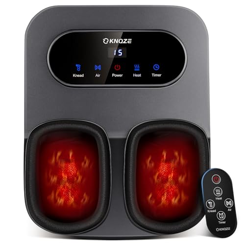 {"about_product": ["【Enjoy Professional Foot Massage】 KNQZE foot massager with heat follows the ergonomic design, targeting the reflex zones of the acupoints on the feet, performing 360° full-coverage massage on the soles, heels and insteps of the feet. Fits Feet Up to Men Size 13.", "【Fast Heating & Timing Function】 3-level heating (L-113°F, M-122°F, H-131°F) and 3-level time (15/20/30 minutes) automatic shut-off function. The heating temperature and massage time can be adjusted according to personal preferences, and customized to meet the foot massage needs of different people.", "【3 Kneading Massage & Air Intensities 】The foot massage machine imitates the technique of professional masseurs to perform deep kneading and massage on the feet, increasing the relaxation of the feet through air compression and relieving tense muscles from toes to heels.", "【Easy to Use & Clean】The wireless remote can control the foot massager without bending down. The foot massage machine is lightweight and portable (only 5.6 pounds), making it easy to move it anywhere for use. Removable foot covers allow for easy cleaning and ensure foot hygiene.", "【Gift Ideas & Warranty】Made of high-quality ABS waterproof material, just wipe it with a damp cloth if it is dirty. KNQZE shiatsu foot massager is the best gift for women, men, dad, mom or any lover. The KNQZE massager comes with a 1-year warranty. Free replacement for any damage within 1 year."], "product_description": null, "product_information": {"ASIN": "B0C531MWPJ", "Manufacturer": "KNQZE", "Customer Reviews": "4.5 4.5 out of 5 stars \n\n (1,494)", "Best Sellers Rank": "#1,842 in Health & Household (See Top 100 in Health & Household) #9 in Electric Foot Massagers", "Item model number": "KF7", "Product Dimensions": "14.96 x 12.6 x 6.69 inches; 5.6 Pounds", "Date First Available": "May 12, 2023"}, "product_details": {"Brand": "KNQZE", "Use for": "Foot", "Material": "Plastic", "Item Weight": "5.6 Pounds", "Power Source": "Corded Electric"}}