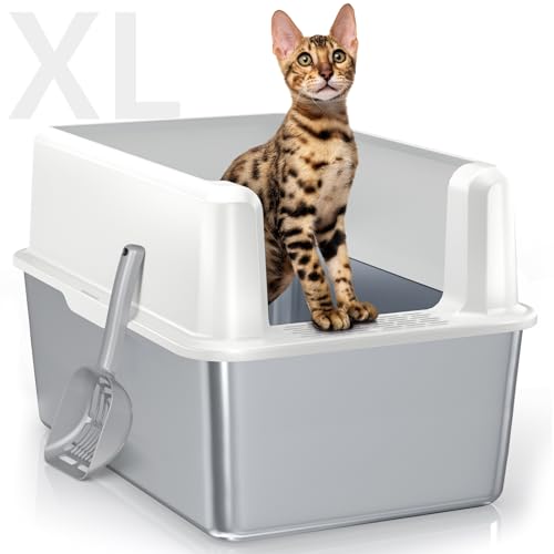 {"about_product": ["【Extra Large Size】 The XL stainless steel litter box measures 23.5\" X 15.6\" X 13\", providing a spacious space for big cats while being suitable for cats of all sizes, the extra large size makes it the best choice for multi-cat households", "【Why Choose Stainless Steel Litter Box!】 Open top stainless steel cat litter box made of high-quality ABS enclosed high wall enclosure and stainless steel litter pan, unlike plastic litter boxes, stainless steel litter boxes with high sides do not collect any residue or odor, are easily to clean, have strong and durable, and never rusty", "【6\" High-Sided Enclosure, Reduce Mess!】The height of the extra large stainless steel cat litter box is 13\", with a unique curved high wall design, to protect your cat's privacy and prevent litter spilling and urine leaking. The tracking-proof pedal further prevents litter from being carried out, ensuring a mess-free indoor environment even with a naughty cat", "【Secure Buckle Connection】The stainless steel cat litter pan is tightly connected to the high wall by a buckle, more stable connection, and no need to worry about the shell falling off", "【Better Solution】 If you are tired of the odor from the cat litter after your cat pees, please buy this stainless steel litter box to solve your problem. WoofiGo believes it will be your last cat litter box. If you have any questions, please contact WoofiGo; we will do our best to solve your problems", "【High-Quality Source Manufacturer】 WoofiGo is a source pet products manufacturer integrating production and sales. It has professional R&D, sales, customer support teams, and strict quality inspection departments. Choosing WoofiGo means you have chosen a high-quality stainless steel cat litter box with high sides. If you encounter any product issues, please contact our customer support team, WoofiGo will provide you with the best service"], "product_description": null, "product_information": {"ASIN": "B0C5XR973C", "Size": "X-Large", "Color": "5 - Dark Gray (Pack of 1)", "Style": "Rectangle", "Material": "Stainless Steel", "Brand Name": "WoofiGo", "Directions": "Great for Big Cats and Multi-Cat Households", "Model Name": "Open Top Litter Box", "Item Weight": "16 ounces", "Manufacturer": "WoofiGo", "Number of Items": "1", "Item model number": "SH2803", "Included Components": "Cat Litter Scoop *1Pcs, Enclosure(ABS) *1Pcs, Stainless Steel Litter Pan *1Pcs", "Breed Recommendation": "All Breed Sizes", "Date First Available": "July 14, 2023", "Warranty Description": "1", "Age Range Description": "All Life Stages", "Item Dimensions LxWxH": "23.5 x 16 x 13 inches", "Target Audience Keyword": "Cats, house-cats", "Specific Uses for Product": "Indoor, Outdoor", "Item Package Dimensions L x W x H": "24 x 16.2 x 7.6 inches"}, "product_details": {"UPC": "616421441836 199284261693", "Size": "X-Large", "Brand": "WoofiGo", "Color": "5 - Dark Gray (Pack of 1)", "Style": "Rectangle", "Material": "Stainless Steel", "With Lid": "Yes", "Item Weight": "16 ounces", "Manufacturer": "WoofiGo", "Product Dimensions": "23.5"L x 16"W x 13"H"}}