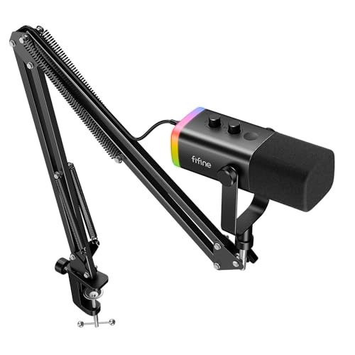 {"about_product": ["USB/XLR Connectivity-AM8T comes with a dynamic microphone and a boom arm stand. Versatile PC gaming microphone kit with USB compatibility plug and play for PC in streaming or recording, without additional drivers. And also, while in XLR compatibility for mixer or sound card connection, the XLR studio vocal microphone is good at vocal, podcast, or musical instruments creation.", "Vibrant RGB Light-The streaming microphone RGB illuminates your gaming setup with customizable RGB lighting for a visually stunning game experience. You can easily control the RGB mode/colors or turn off by simply tapping the RGB button without making any complicated settings on specific software.", "Enhanced Features-Featured -50dB sensitivity and cardioid polar pattern, the USB recording mic kit not easily pick up background noise for delivering clear audio. The PC gaming microphone USB kit includes a boom arm for easy positioning, mute button and gain knob for precise control, headphones jack for real-time monitoring, and headphone volume control while streaming or recording.", "Decent for Gamers and Streamers-The XLR microphone designed specifically to meet the needs of gaming enthusiasts and streamers. Ideal for various applications, including gaming, streaming, podcasting, voiceovers, and more, which also works with popular streaming software like OBS and Streamlabs.", "Recording Microphone Kit-The dynamic microphone is more convenient for working from home or going out for podcasts, and the complete accessories allow for faster recording work due to its simple straightforward assembly. External windscreen of the XLR dynamic microphone filter out plosive voice.", "Durable Arm Stand - Made of sturdy metal with strong and elastic springs for stability, the arm stand hold the XLR/USB mic in secure support for stable vocal recording. Desk clamp features an anti-scratch pad and fits a desktop thickness up to 2 inch for easy installation usage You can adjust the position and angle of the arm stand for adjustment and movement of the microphone.", "Tips: 1) The desk clamp is suitable for desktop with a thickness of less than 2 inch. 2) AM8T package comes with dynamic microphone, Boom Arm Stand, C-Clamp, 8.2ft USB to USB-C Cable, User's Manual. 3) XLR cable NOT included."], "product_description": null, "product_information": {"UPC": "850052511166", "ASIN": "B0C74GYW3J", "Material": "ABS Plastic, Metal, Sturdy Material", "Color Name": "Black", "Item Weight": "2.55 pounds", "Manufacturer": "FIFINE", "Power Source": "Corded Electric", "Material Type": "ABS Plastic, Metal, Sturdy Material", "Best Sellers Rank": "#22 in Musical Instruments (See Top 100 in Musical Instruments) #1 in Vocal Dynamic Microphones", "Hardware Platform": "Mixer, Sound Card, Audio Interface, PC, Desktop, Laptop", "Item model number": "AM8T", "Frequency Response": "20 KHz", "Number of Channels": "1", "Package Dimensions": "16.34 x 7.44 x 3.46 inches", "Date First Available": "July 3, 2023", "Signal-to-Noise Ratio": "80 dB", "Microphone Form Factor": "Microphone Kit"}, "product_details": {"Brand": "FIFINE", "Color": "Black", "Model Name": "AMPLIGAME AM8T", "Polar Pattern": "Unidirectional", "Connector Type": "USB, XLR", "Special Feature": "(function(f) {var _np=(window.P._namespace(\"DetailPageProductOverviewTemplatesJava\"));if(_np.guardFatal){_np.guardFatal(f)(_np);}else{f(_np);}}(function(P) { P.when('A').execute(function(A){ A.on('a:truncate:po-attribute-truncate-5:updated', function(data) { var isTruncated = !data.truncateInstance.getIfTextFits(); var seeMoreElement = document.getElementById('po-attribute-see-more-id-5'); if(seeMoreElement) { seeMoreElement.style.display = isTruncated ? '' : 'none'; } }) }); })); Controllable RGB, Headphones Jack and Headphones Vol. Control, Mute Function, Volume Control, XLR/USB Connectors See more", "Compatible Devices": "Computer, Mixer, Audio Interface, Mac OS, Windows", "Included Components": "(function(f) {var _np=(window.P._namespace(\"DetailPageProductOverviewTemplatesJava\"));if(_np.guardFatal){_np.guardFatal(f)(_np);}else{f(_np);}}(function(P) { P.when('A').execute(function(A){ A.on('a:truncate:po-attribute-truncate-8:updated', function(data) { var isTruncated = !data.truncateInstance.getIfTextFits(); var seeMoreElement = document.getElementById('po-attribute-see-more-id-8'); if(seeMoreElement) { seeMoreElement.style.display = isTruncated ? '' : 'none'; } }) }); })); 8.2ft (2.5m) USB C to USB Cable*1, Boom Arm Stand*1, C-Clamp*1, Dynamic Microphone with Windscreen*1, User's Manual*1 See more", "Connectivity Technology": "USB, XLR", "Recommended Uses For Product": "Gaming, Recording Podcast Voice-Over, Streaming, Vocal"}}