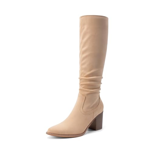 {"about_product": ["Easy To Wear: The inside zipper design makes these boots easy to put on and take off, while the elastic panel stretches and can accommodate different calf shapes.", "Comfortable & Stable: Set on a 3-inch layered heel that adds height for a sleek look and with the durable TPR rubber outsole, you can confidently tackle any terrain in style while walking with stability and support throughout the day.", "Trendy & Stylish: These pointed-toe retro-inspired women’s boots are attractive and comfy, made with a suede-like material that is slightly stretchy and lined with a soft and warm lining.", "Accentuates Legs: Designed with a knee-high shaft that is perfect for elongating your legs, the stretch panels allow for a wider shaft entry, and the zipper makes them easy to put on.", "Versatile Style: Pair these knee-high boots with skinny jeans, shorts, skirts, or even a cute utility jacket or wool coat for a fashionable look."], "product_description": "These boots are made for walking and are a must-have for your wardrobe. These multi-occasion knee-high boots can be your perfect companion from autumn to winter and can be styled with a range of outfits for a chic look.", "product_information": {"ASIN": "B0G3WQ8NCT", "Department": "womens", "Customer Reviews": "4.5 4.5 out of 5 stars \n\n (827)", "Product Warranty": "For warranty information about this product, please click here", "Best Sellers Rank": "#24,329 in Clothing, Shoes & Jewelry (See Top 100 in Clothing, Shoes & Jewelry) #77 in Women's Knee-High Boots", "Date First Available": "November 25, 2025"}, "product_details": {"Shaft height": "Knee High", "Sole material": "Thermoplastic Elastomers", "Outer material": "Faux Suede", "Shaft circumference": "15.5 Inches"}}
