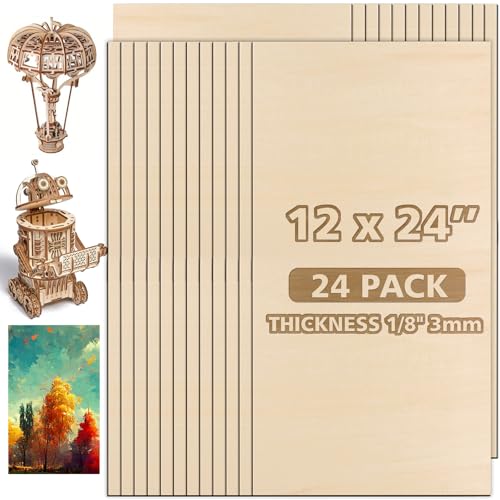 {"about_product": ["BASSWOOD SHEETS SET: Includes 24pcs basswood sheets, providing with enough plywood sheets for craft projects. Ideal for both beginners and professionals. Note: Humidity and temperature changes will cause warping, please seal and store in a dry place", "STANDARD SIZE: Each basswood sheet measures about 12 x 12 x 1/8 inches (300 mm x 300 mm x 3 mm), making it easy to handle and suitable for cutting into various shapes and sizes", "BASSWOOD FOR CRAFTS: These square basswood sheets are appropriate for laser cutting, wood burning, painting, staining, model carving and engraving. You can use the basswood sheets to create various DIY projects, including home decor, ornaments, signs", "CONSISTENT BASSWOOD: Made of even-grained basswood, these unfinished plywood sheets are sturdy and consistent, will not easily warp and crack, ensuring that your crafts will last for a long time", "SMOOTH SURFACE: These basswood sheets have a smooth and even surface that is easy to paint, stain, or decorate with markers, making them suitable for all types of art and craft projects"], "product_description": null, "product_information": {"ASIN": "B0C7CG4LKP", "Item Form": "Sheet", "Item Weight": "7.41 pounds", "Manufacturer": "Adrattnay", "Item Thickness": "0.13 Hundredths-Inches", "Number of Items": "24", "Number of pieces": "24", "Assembly required": "No", "Best Sellers Rank": "#8,426 in Arts, Crafts & Sewing (See Top 100 in Arts, Crafts & Sewing) #82 in Unfinished Wood", "Item model number": "BWS20230607", "Batteries required": "No", "Product Dimensions": "12 x 12 x 2.8 inches", "Included Components": "basswood sheets", "Warranty Description": "1 year"}, "product_details": {"Brand": "Adrattnay", "Color": "24PACK", "Shape": "Square", "Material": "Basswood", "Item dimensions L x W x H": "12 x 12 x 2.8 inches"}}