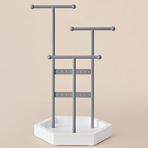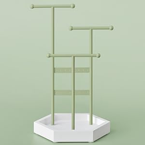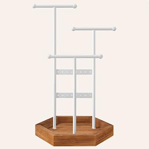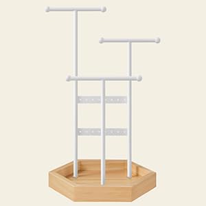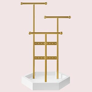 {"about_product": ["[Elegant and Stylish Gift] Classic gold and white tones give this jewelry holder an elegant look, making it a perfect gift choice for your loved ones", "[Multipurpose Jewelry Storage] This jewelry stand features 16 holes for studs, 3 T-bars of different heights, and a bottom tray, keeping your various jewelry like earrings, rings, bracelets, and necklaces organized and ready to wear", "[No More Tangled Jewelry] Make your everyday accessorizing easy with this jewelry stand. It has 3 T-bars of different heights, an earring panel, and a base tray to keep your jewelry tangle-free and easily accessible", "[Sturdy, Durable, and Stable] The jewelry stand is a stable and safe haven for your treasured jewelry, thanks to a hexagonal base and 3 metal T-bars arranged in a triangular distribution and securely screwed to the base", "[Easy-Peasy Assembly] Your jewelry display stand is just 2 steps away: simply take out the base, screw the 3 metal T-bars to the base, and then it's ready to help you put your favorite jewelry collection on display"], "product_description": null, "product_information": {"UPC": "194343129976", "ASIN": "B0C7QG219T", "Size": "1 Pack", "Brand": "SONGMICS", "Color": "Pale Gold + White", "Shape": "Tree", "Style": "Modern", "Finish": "Metal Frame", "Material": "Metal", "Finish Type": "Metal Frame", "Item Weight": "1.1 pounds", "Part Number": "UJJS003A01", "Manufacturer": "SONGMICS", "Mounting Type": "Freestanding", "Warranty Type": "No Warranty", "Inner Material": "Metal", "Number of Items": "1", "Special Feature": "Durable, Multipurpose", "Target Audience": "Women,Girls", "Number Of Pieces": "1", "Special Features": "Durable, Multipurpose", "Best Sellers Rank": "#17,001 in Clothing, Shoes & Jewelry (See Top 100 in Clothing, Shoes & Jewelry) #18 in Jewelry Towers", "Product Dimensions": "7\"D x 8\"W x 14.1\"H", "Batteries Included?": "No", "Batteries Required?": "No", "Included Components": "1 x Jewelry Stand", "Date First Available": "November 8, 2023", "Jewelry Storage Type": "Jewelry Stand", "Number of Compartments": "4", "Recommended Uses For Product": "Necklace, Earring, Bracelet, Studs, Rings"}, "product_details": {"Brand": "SONGMICS", "Color": "Pale Gold + White", "Shape": "Tree", "Style": "Modern", "Material": "Metal", "Finish Type": "Metal Frame", "Special Feature": "Durable, Multipurpose", "Target Audience": "Women,Girls", "Product Dimensions": "7"D x 8"W x 14.1"H", "Recommended Uses For Product": "Necklace, Earring, Bracelet, Studs, Rings"}}