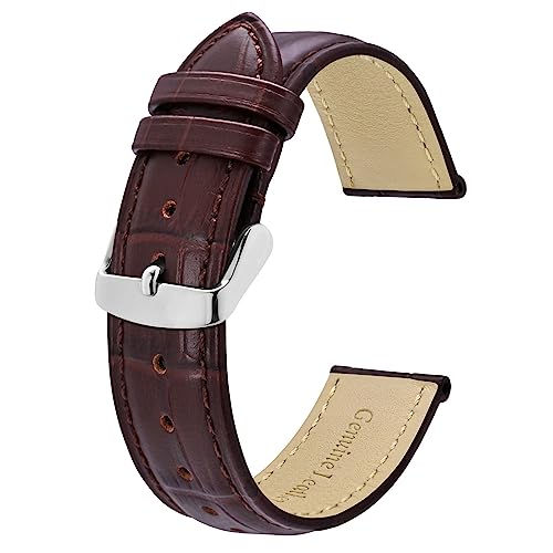 {"about_product": ["Band Material: High-quality calfskin with alligator grain embossing, lining with soft genuine leather, breathable and comfortable to wear, solid stainless steel buckle", "Band Design: Adopting a padded style, this strap tapers in thickness from 5mm to 3mm, vivid crocodile pattern, adding character to a watch", "Band Width (Size): Fit for different kinds of watch that uses 18mm, 20mm, 22mm, 24mm spring bars, please accurately measure your watch lug width and choose the right size", "Band Length: 75mm and 125mm. This strap is designed to fit wrists 6\" to 8\" (15.5cm-20cm), but watch geometry also impacts fit", "Package Included: 1 watch strap + 1 installation tool + 4 spring bars. Any questions about the strap, please contact us. REFUND or FREE REPLACEMENT, we will try our best to satisfy every customer"], "product_description": null, "product_information": {"ASIN": "B0C85NMY6D", "Department": "womens", "Manufacturer": "BISONSTRAP", "Customer Reviews": "4.5 4.5 out of 5 stars \n\n (1,736)", "Product Warranty": "For warranty information about this product, please click here", "Best Sellers Rank": "#112,411 in Clothing, Shoes & Jewelry (See Top 100 in Clothing, Shoes & Jewelry) #40 in Women's Watch Bands", "Item model number": "BNP-8A-US", "Date First Available": "June 15, 2023"}, "product_details": {"Material": "Leather", "Clasp type": "Tang Buckle", "Metal type": "Stainless Steel", "Item type name": "Bracelet"}}