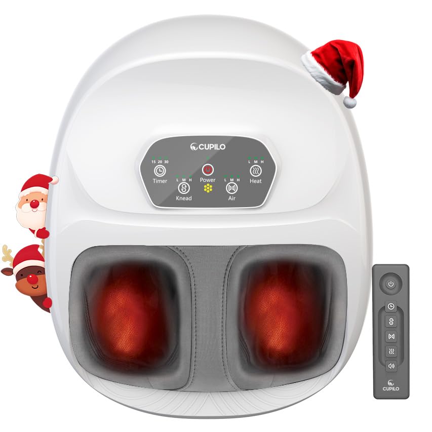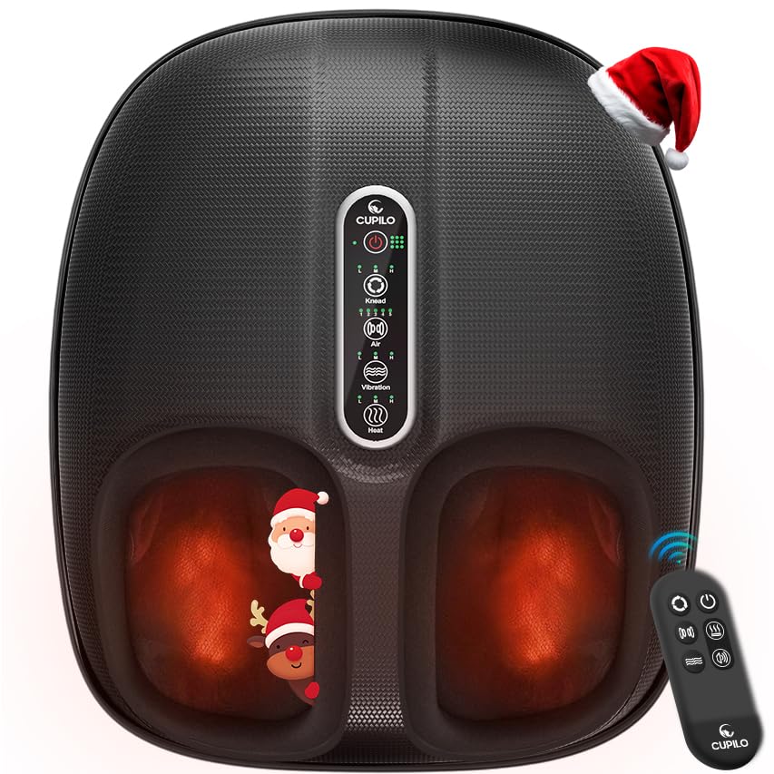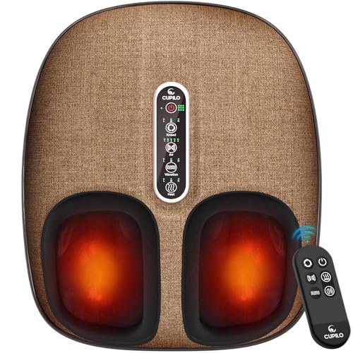 {"about_product": ["Relax Your Feet, Relax Your Body: The CuPiLo foot massager with heat uses flexible pressure nodes to deliver targeted shiatsu massage to specific areas of the feet. It combines rolling/kneading, rapid heating, compression, and vibration to relieve stress and address a variety of foot issues. This shiatsu foot massager offers the ultimate foot care experience, helping alleviate plantar fasciitis, neuropathy pain, chronic discomfort, and muscle tension—perfect for overall foot health and wellness.", "Fast Heating & Safe Use: The foot massager with heat delivers soothing warmth to cold, stiff feet, making it an excellent foot heater or foot warmer. It helps ease foot fatigue and soreness, promotes circulation, and improves sleep quality. Adjustable heat settings (113–131°F) and built-in overheating protection with auto shut-off ensure a safe and worry-free massage experience.", "5 Adjustable Compression Intensities: The CuPiLo foot massager for plantar fasciitis and neuropathy features five customizable compression levels for the instep, heel, and ankle. Paired with deep tissue massage, heat, and vibration, it provides a full-coverage, relaxing, and effective massage. Easily tailor your experience to suit your personal preferences for optimal comfort.", "Unique Vibration Foot Massage: Equipped with three vibration modes, the extra vibration function enhances the overall massage experience. CuPiLo Foot Massager helps revitalize tired feet after long hours of standing or walking, offering neuropathy pain relief for feet and improved circulation.", "Easy to Clean & Great for Gifting: The CuPiLo heated feet massager includes a removable and washable foot sleeve for hygiene and convenience—ideal for shared or repeated use. It fits foot sizes up to men's size 13, making it suitable for various foot types. As a product listed under both FSA eligible items only list and HSA store eligible items, it also makes an ideal gift for women, men, parents, or anyone you love—on birthdays, Christmas, Thanksgiving, or other special occasions."], "product_description": null, "product_information": {"ASIN": "B0C85YMGQ8", "Manufacturer": "CUPILO", "Customer Reviews": "4.5 4.5 out of 5 stars \n\n (1,370)", "Best Sellers Rank": "#1,867 in Health & Household (See Top 100 in Health & Household) #11 in Electric Foot Massagers", "Item model number": "CPL-5522", "Product Dimensions": "12.8 x 6.8 x 13.7 inches; 6.59 Pounds", "Date First Available": "June 15, 2023"}, "product_details": {"Brand": "CuPiLo", "Use for": "Feet", "Material": "Faux Leather", "Item Weight": "6.6 Pounds", "Power Source": "Corded Electric"}}
