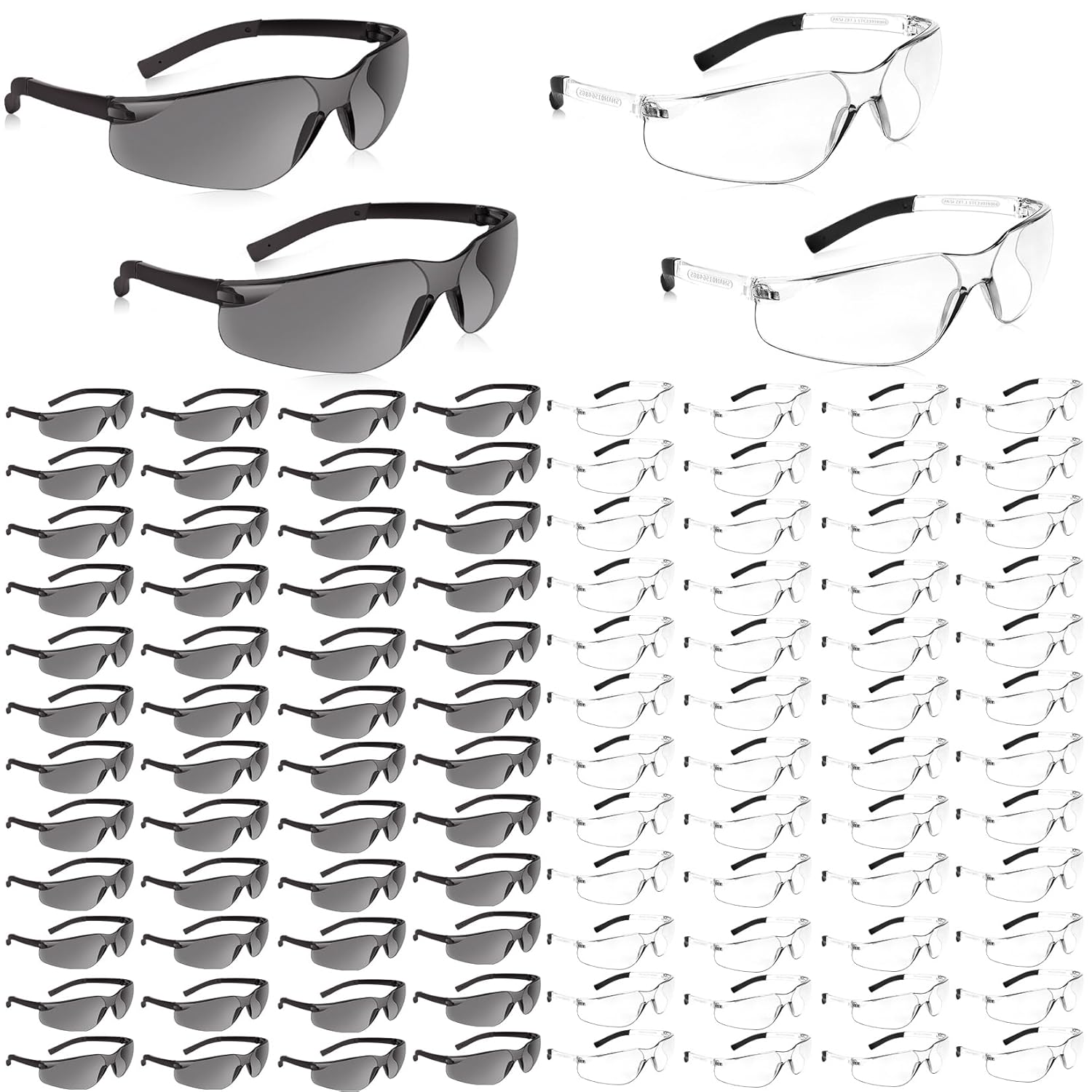 {"about_product": ["Safety Glasses: clear glasses, polycarbonate scratch resistant glasses, with excellent scratch, ballistic impact, debris, particle resistance. Safety glasses for men protects your eyes from wind, airborne contaminants, splashing water and bad weather", "Wraparound Design and Soft: Wraparound design with transparent lenses provides direct and peripheral visibility, wraparound lens design allows the clear and tinted safety glasses to easily fit your face while also providing excellent eye protection, safety glasses tinted combine versatility and value for comfort, and contour fit", "ANSI Z87.1: The work glasses lenses have ANSI Z87.1 standard, which has good scratch resistance and impact resistance, excellent clarity restores true color", "Appropriate Size: Eye protection glasses frame width : 5.91 inch, leg length:5.91 inch, lens length: 2.95 inch, which is suitable for most adults and teens, so you can share protective eyewear with your family mates", "Lightweight and Sturdy: Ansi Z87.1 safety glasses protect your eyes for a long time . Lightweight safety glasses bulk are not only suitable for various work situations, but also can be used in daily life. Safety glasses are ideal for labs, gardening mowing, construction, metalworking, welding, hunting, biking, industry, painting, DIY, etc"], "product_description": null, "product_information": {"ASIN": "B0C8LYDCRY", "Department": "Unisex", "Customer Reviews": "4.5 4.5 out of 5 stars \n\n (949)", "Best Sellers Rank": "#7,351 in Tools & Home Improvement (See Top 100 in Tools & Home Improvement) #23 in Safety Glasses", "Item model number": "118", "Package Dimensions": "13.03 x 10.98 x 6.3 inches; 5.45 Pounds", "Date First Available": "August 8, 2023"}, "product_details": {"Brand": "Salfboy", "Color": "118-50grey+50clear", "Material": "Plastic", "Frame Type": "Full Rim", "Frame Material": "Plastic"}}