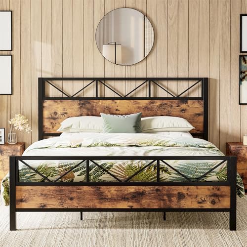 {"about_product": ["51.2 \" Super High Headboard: Bed Frame with industrial tall headboard and footboard is very atmospheric and feel free to match your preferred mattress thickness", "Quick installation: The thoughtful design makes installation a breeze and saves your precious time, you only need forty minutes to get a Queen platform bed frame", "Industrial Style: P2 graide MDF board and black metal. Retro brown industrial appearance and reliable steel frame, both retro and modern aesthetics, are very suitable for your bedroom", "Sturdy and No Noise: Heavy Duty Steel Slats ensure the comfort and durability of the frame and provide good sleep, No more squeaky frames", "Under-Bed Storage: Featuring a 12.2 inches clearance beneath the bed, this platform bed offers additional storage space. Bed Frame Queen Size Dimensions: L x W x H: 83.1 x 60.2 x 51.2 inches, Capacity: 1100 lbs"], "product_description": null, "product_information": {"ASIN": "B0C8S4KKMC", "Size": "Queen", "Brand": "LIKIMIO", "Color": "Rustic Maple", "Finish Type": "Steel", "Form Factor": "platform bed frame with tall headboard", "Item Weight": "76 pounds", "Manufacturer": "LIKIMIO", "Special Feature": "tall headboard", "Storage Options": "Under-bed storage", "Furniture Finish": "Black", "Assembly Required": "Yes", "Best Sellers Rank": "#47,778 in Home & Kitchen (See Top 100 in Home & Kitchen) #167 in Bed Frames", "Item model number": "HK-QBF-018F", "Headboard Material": "Engineered Wood", "Product Dimensions": "83.1\"L x 60.2\"W x 51.2\"H", "Included Components": "queen bed frame with headboard", "Date First Available": "June 21, 2023", "Ground To Item Distance": "12.2 Inches", "Compatible With Mattress Size": "Queen, 60 x 80 inches (or 153 x 203 cm)", "Assembly Instructions Description": "Assembly instructions are provided, but the specific details are not mentioned."}, "product_details": {"Size": "Queen", "Style": "Rustic", "Material": "Engineered Wood, Metal", "Special Feature": "tall headboard", "Product Dimensions": "83.1"L x 60.2"W x 51.2"H"}}