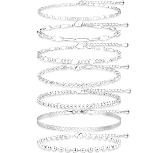 {"about_product": ["STYLISH SILVER ANKLET SET: You will receive 7 styles of anklet. Our silver anklets sets for women include beaded ball chain, Cuban chain, paperclip chain, snake chain figaro chain, rope chain, and mirror chain. You can combine and match at will according to your own dressing style", "NON TARNISH SILVER ANKLET: Our silver anklets for women waterproof is made of brass and silver to ensure not fade, no lead, no nickle. All women's anklets not easy tarnish, friendly to sensitive skin can be worn regularly", "GOOD QUALITY LAYERED ANKLETS: Our fashionable layered silver anklets looks shiny and pricey, it will exceed your expectations. Each silver chain is well made and looks authentic. The anklets are delicately designed, don't worry that this set of gold chain bracelets will weigh down your wrist.", "PERFECT GIFTS DAINTY ANKLETS SET: You can choose our exquisite gold jewelry set as a surprise gift for your loved ones, family and friends for any festivals such as Valentine's Day/Mother's Day/Christmas", "LITTLE TIPS: Poxtex is committed to providing good after-sales for our customers., if you have any questions, please contact us promptly and we will reply you within 24 hours"], "product_description": "", "product_information": {"ASIN": "B0CC2KMSN9", "Department": "womens", "Customer Reviews": "4.5 4.5 out of 5 stars \n\n (2,546)", "Product Warranty": "For warranty information about this product, please click here", "Best Sellers Rank": "#40,456 in Clothing, Shoes & Jewelry (See Top 100 in Clothing, Shoes & Jewelry) #20 in Women's Anklets", "Product Dimensions": "8.5 x 0.01 x 0.01 inches", "Date First Available": "July 17, 2023"}, "product_details": {"Gem type": "No gemstone", "Material": "Silver, Sterling Silver, Brass", "Chain type": "Snake Chain, Cuban Chain, Bead Chain", "Clasp type": "Lobster Claw", "Metal type": "Brass", "Item type name": "Jewelry"}}