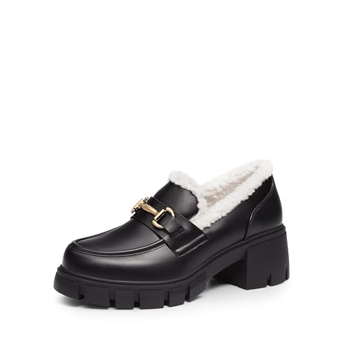 {"about_product": ["Sweet & Timeless: Crafted with a finely stitched toe and adorned with a statement horse-bit detail, these loafers for women blend charm and sophistication.", "Trendy Chunky Sole: Stand tall with these chunky loafers for women. Set on a 2.17-inch heel and 0.83-inch platform, these platform loafers for women feature a lug outsole that adds a fashion-forward edge.", "Cushioned Comfort: These women’s loafers are designed for all-day wear. The padded collar prevents chafing, while the 5mm PU-covered insole provides plush comfort.", "Slip-On Design: Effortlessly stylish, the convenient slip-on design makes these women’s slip-on shoes perfect for busy mornings and spontaneous plans.", "Versatile Style: Whether paired with jeans, skirts, dresses, or tailored pants, these women’s dress shoes are a wardrobe staple."], "product_description": null, "product_information": {"ASIN": "B0DSGHL96B", "Department": "womens", "Customer Reviews": "4.4 4.4 out of 5 stars \n\n (1,977)", "Product Warranty": "For warranty information about this product, please click here", "Best Sellers Rank": "#14,020 in Clothing, Shoes & Jewelry (See Top 100 in Clothing, Shoes & Jewelry) #29 in Women's Loafers & Slip-Ons", "Date First Available": "January 7, 2025"}, "product_details": {"Closure type": "Pull-On", "Sole material": "Rubber", "Inner material": "Jersey Fabric", "Outer material": "Leather"}}
