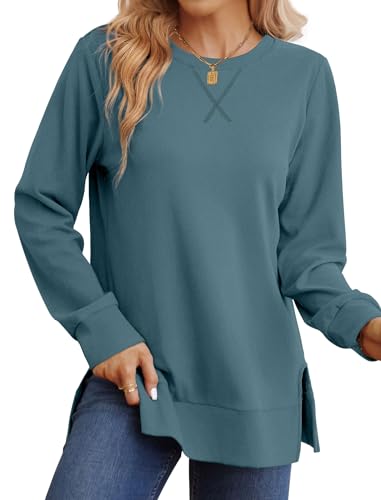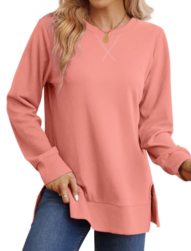 {"about_product": ["PLEASE NOTE:Due to our product being vacuum-packed, the sweatshirt may appear wrinkled. However, it will regain its original condition after washing or ironing.", "Design: Relaxed fit,Unique Side Split hem: making it look more stylish and trendy, increased softness and flexibility/provides enhanced comfort and breathability for an improved wearing experience.", "Match:Whether it's paired with jeans, legging shorts, or a skirt, this sweatshirt can effortlessly create various fashionable styles.The length perfect for leggings", "Occasion:Perfect for family and friends. Suitable for everyday wear and exercise. Great for travel or running errands, perfect for trips, vacations, or shopping.", "Please refer to SALOOGOE size chart, we use standard US sizes and provide inches and centimeters for reference"], "product_description": null, "product_information": {"ASIN": "B0CHKQPFSL", "Department": "womens", "Customer Reviews": "4.3 4.3 out of 5 stars \n\n (2,339)", "Product Warranty": "For warranty information about this product, please click here", "Best Sellers Rank": "#1,598 in Clothing, Shoes & Jewelry (See Top 100 in Clothing, Shoes & Jewelry) #11 in Women's Fashion Sweatshirts", "Package Dimensions": "9.8 x 7.9 x 0.4 inches; 4.94 ounces", "Date First Available": "July 5, 2023"}, "product_details": {"Origin": "Imported", "Fabric type": "Both solid colors and prints are made from 90% Polyester and 10% Spandex. The material is soft, stretchy, and comfortable with an excellent drape for a superior wearing experience.", "Closure type": "Pull On", "Care instructions": "Machine Wash"}}