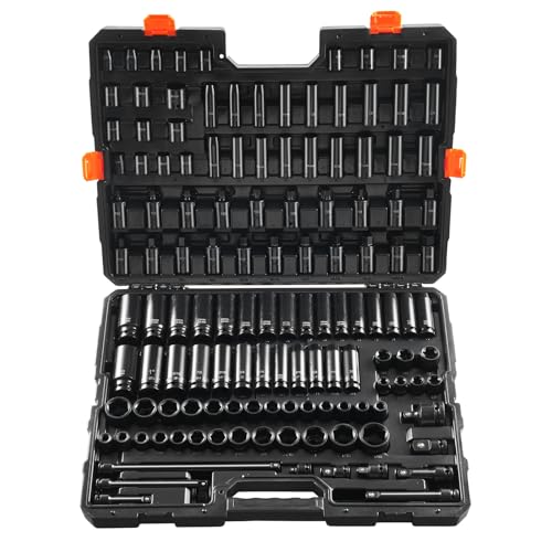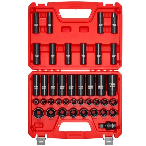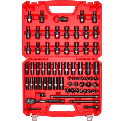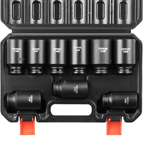 {"about_product": ["Cr-V Industrial-Grade Alloy Steel: Crafted from premium impact-grade alloy steel, our 1/2 impact socket set with Cr-V industrial-grade alloy steel offers exceptional enhancements in impact resistance and absorption. Through the utilization of vacuum heat treatment, the steel undergoes rapid heating and cooling processes, resulting in a polished and highly durable surface. This makes it well-suited for a wide range of operational environments.", "High Torque: Distinguished by its hexagonal drive design, which sets it apart from traditional designs lacking rounded corners, this socket tool set significantly reduces pressure exerted on fasteners during impact. As a result, it minimizes wear and effectively prevents bolt rounding and stripping.", "Easy-to-Read Size Markings: The size markings on these 65pcs impact driver socket set are meticulously laser-etched and rolled, ensuring effortless identification of socket sizes even in low light conditions.", "Convenient Storage & Transportation: The set is accompanied by a moderate-weight metal toolbox, providing convenient portability. The toolbox facilitates organized storage of the tools after use, eliminating the risk of unnecessary scattering or loss.", "Abundant Components: This comprehensive set includes an array of components, such as deep and standard sockets 10mm, 11mm, 12mm, 13mm, 14mm, 15mm, 16mm, 17mm, 18mm, 19mm, 20mm, 21mm, 22mm, 23mm, 24mm, 3/8\", 7/16\", 1/2\", 9/16\", 5/8\", 11/16\", 3/4\", 13/16\", 7/8\", 15/16\", 1\", 1-1/16\", 1-1/8\", 1-1/4\". Other components include extension bars in lengths of 3\",5\",10\", 1/2\" 72 teeth ratchet wrench, 1/2\" impact universal adapter, 1/2\"F x 3/8\"M adapter, and 3/8\"F to 1/2\" M adapter."], "product_description": null, "product_information": {"UPC": "840349938493", "ASIN": "B0CF9WD3KC", "Size": "1/2\" Deep&Shallow", "Brand": "VEVOR", "Color": "Black", "Shape": "hexagonal", "Style": "1/2\" 65PCS", "Finish": "Polished", "Pattern": "65PCS CR-V", "Material": "Chrome Vanadium Steel", "Finish Type": "Polished", "Item Weight": "32 pounds", "Part Number": "1/2 Drive Impact Socket Set 65 Piece", "Drive System": "Hex", "Manufacturer": "VEVOR", "Power Source": "hand_powered", "Number of Pieces": "65", "Best Sellers Rank": "#1,089 in Tools & Home Improvement (See Top 100 in Tools & Home Improvement) #3 in Socket Sets", "Item model number": "SS213878655", "Product Dimensions": "21.06 x 16.85 x 2.68 inches", "Batteries Required?": "No", "Bit Compatibilities": "Ratchet, Wrench", "Included Components": "1 x Toolbox, 1 x User Manual, 29 x Deep Socket, 29 x Standard Socket, 3 x Extension Bar, 1 x Wrench, 3 x Adaptor", "Date First Available": "August 10, 2023", "Drive Bit Shank Style": "Hex Shank", "Item Package Quantity": "1", "Compatible Fastener Range": "0.75 inches"}, "product_details": {"Brand": "VEVOR", "Material": "Chrome Vanadium Steel", "Finish Type": "Polished", "Drive System": "Hex", "Number of Pieces": "65"}}