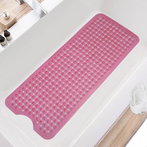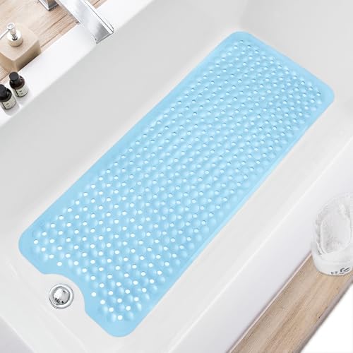 {"about_product": ["NON-SLIP LARGE BATH MAT: Our non-slip large bathtub mat offers superior coverage with its 40 x 16-inch size, maximum coverage for the bathtub floor. Equipped with 362 special large suction cups, this mat securely stays in place on smooth, clean surfaces, making it ideal for home, spa, sauna, gym baths, and showers.", "FUNCTIONAL BATHROOM MAT: Our versatile bath mat features a domed design resembling pebbles, offering a massage-like experience during shower time. The irregular texture on the surface enhances friction and prevents slipping. Additionally, with 327 big drain holes, water circulation is optimized and smoother drainage.", "SAFETY SHOWER MAT: Our bath mat is made of high quality soft-touch PVC, ensuring a safe and wonderful bathing experience. It is especially suitable for the elderly, children and babies. In addition this bathmat is available in a variety of colors to add a splash of color to your bathroom decor.", "MACHINE WASHABLE: Conveniently machine-washable and easy to maintain, this non-slip bathtub mat can be effortlessly cleaned. Simply toss it into the machine with gentle detergent and wash it on a cold water setting. Afterward, hang it to dry. We recommend periodically rinsing and air-drying the shower mat.", "TIPS FOR OPTIMAL USAGE: Before use, make sure to clean the surface thoroughly. Place and press the suction cups securely before each use to ensure the mat stays in place. This shower mat is designed to attach only to clean and smooth surfaces, so avoid using it on textured, non-smooth, or refinished surfaces."], "product_description": null, "product_information": {"ASIN": "B0CFJVMD5R", "Size": "40\" x 16\" (Rectangular)", "Brand": "TEESHLY", "Color": "Gray", "Shape": "Rectangular", "Material": "Polyvinyl Chloride (PVC)", "Item Weight": "1.85 pounds", "Manufacturer": "TEESHLY", "Best Sellers Rank": "#2,259 in Home & Kitchen (See Top 100 in Home & Kitchen) #4 in Bathtub Mats", "Item model number": "10040", "Product Dimensions": "40\"L x 16\"W", "Date First Available": "October 16, 2023"}, "product_details": {"Size": "40" x 16" (Rectangular)", "Brand": "TEESHLY", "Color": "Gray", "Material": "Polyvinyl Chloride (PVC)", "Item Weight": "1.9 Pounds"}}