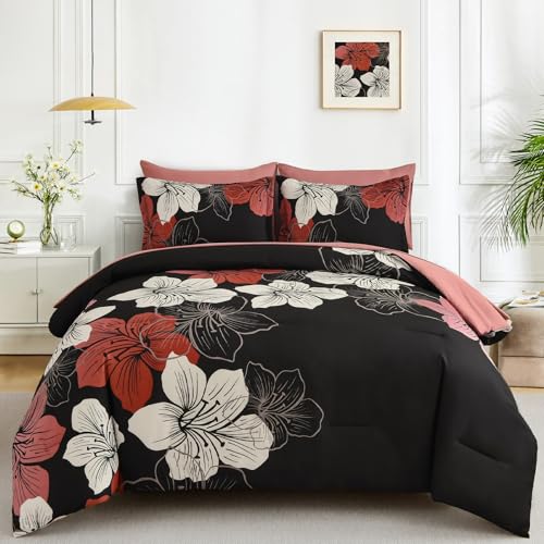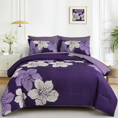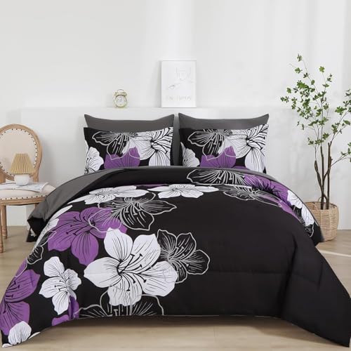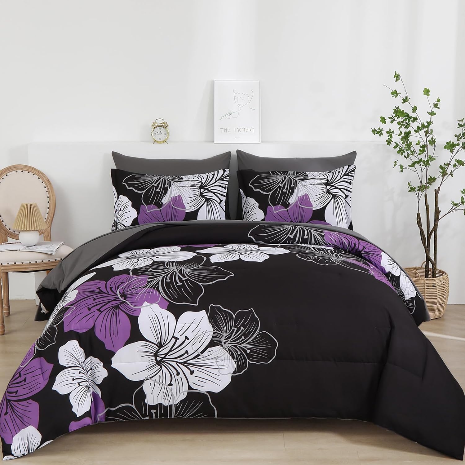 {"about_product": ["?Soft Materials: Purple floral comforter made of microfiber fabric and ultra soft down alternative inner fill. Filling with whole microfiber technology to prevent internal clumping after washing, make you enjoy a good sleep", "? Cute Floral Design: This floral comforter set adopts a reversible design. Purple and white flower printed on black give your bedroom a bright and lively atmosphere, suitable for people of all ages. Cute flower and black combinations to make your bed look more luxurious", "? 7 Pieces Bed in a Bag: Black king size comforter bed in a bag includs 1 comforter (104\"x90\"), 2 pillow shams (20\"x36\"), 1 fitted sheet (78\"Wx80\"L+14\"), 1 flat sheet (102\"Wx108\"L), 2 pillowcases (20\"x40\"). The fitted sheet is 14 inches Pocket, fits mattresses up to 14\"", "?Easy to Care: 7 pieces bed in a bag convenient care, low temperature machine wash, never fade, no wrinkles, dust, easy to remove pet fur. Our sets can be used directly, no need to cover the quilt, more convenient to use. 7 piece comforter set, for you to solve the matching problem", "?Warm Tips: The more the comforter is washed, the softer it will be. The boho comforters is vacuum packed, when you receive it, it may be a little wrinkled. Just wash it or put it in the sun and tap it gently, it will be restored in no time"], "product_description": null, "product_information": {"ASIN": "B0CG5JWZ2Z", "Size": "King", "Brand": "Luxudecor", "Color": "Purple/Black", "Style": "Western", "Theme": "Botanical", "Pattern": "Floral", "Seasons": "All", "Material": "Microfiber", "Fabric Type": "Microfiber", "Item Weight": "9.09 pounds", "Number of Pieces": "7", "Best Sellers Rank": "#17,760 in Home & Kitchen (See Top 100 in Home & Kitchen) #112 in Bedding Comforter Sets", "Pillowcase Length": "40 Inches", "Package Dimensions": "14.92 x 12.28 x 7.64 inches", "Included Components": "Comforter", "Date First Available": "September 20, 2023", "Product Care Instructions": "Machine Wash"}, "product_details": {"Size": "King", "Brand": "Luxudecor", "Color": "Purple/Black", "Style": "Western", "Included Components": "Comforter"}}