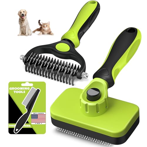 {"about_product": ["【Professional Pet Grooming Kit 】3 Pet grooming tools selected by pet lovers, which can meet daily all the grooming needs of pets. Let you, as the groomer, personally give your furry friend a shiny and healthy coat. This is a must-have beauty product set for pet lovers! The Best Dog Gifts - Merry Christmas", "【Why Choose Augwind 3PCS ?】 Augwind Pet Grooming Rake makes it easy to remove stubborn, tangled hair. Augwind Self-Cleaning Slicker Brush quickly removes loose hair, dander, and residual dirt.Augwind Dog Bath Brush lets your pet enjoy a massage during bath time.Our 3-in-1 Pet Grooming Kit handles all your needs: detangling, hair removal, bathing, and massage – The Ultimate Pet Essentials", "【Dematting and Deshedding Tools】 Augwind Pet Grooming Rake features a double-sided design: The 9-tooth bristle side detangles stubborn knots and mats. The 17-tooth bristle side trims excess pet hair. Augwind self-cleaning dog brush includes a push-button retractable mechanism – simply retract the bristles after use to remove loose hair quickly and effortlessly.", "【Pet Bath Brush】With a User Friendly Design, Augwind dog shampoo brush comes with a perfect adjustable ring handle, which can adapt to different sizes of hands, easy to hold .It can effectively remove pet hair while bathing or massaging.Let your pet fall in love with bathing and enjoy bath time", "【2-Year Warranty】We are a professional pet products company, committed to bringing the safest, practical and affordable pet products to pets and owners. We promise to solve it for you at any time if there is any quality within 2 years. We provide 7*24 hours after-sales service, if you have any questions, please feel free to contact us"], "product_description": null, "product_information": {"ASIN": "B0CGJZKJ9W", "Color": "A-Green Black", "Material": "Plastic", "Brand Name": "Augwind", "Item Weight": "0.37 Kilograms", "Manufacturer": "Augwind", "Number of Items": "3", "Item model number": "Augwind", "Date First Available": "November 3, 2023", "Item Dimensions LxWxH": "4.8 x 4.52 x 8.85 inches", "Target Audience Keyword": "dogs, house-cats", "Specific Uses for Product": "Dog Grooming", "Item Package Dimensions L x W x H": "7.4 x 5.24 x 2.91 inches"}, "product_details": {"Brand": "Augwind", "Color": "A-Green Black", "Shape": "Oval, Rectangular, Round", "Handle Material": "Silicone", "Bristle Material": "Stainless Steel"}}