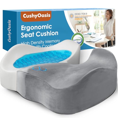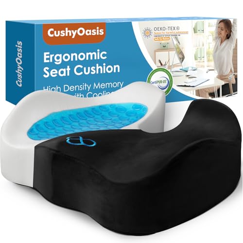 {"about_product": ["Ergonomic Contour Design: Our cushions are meticulously designed with a contoured shape that perfectly fits the body's natural curves, offering full support to your hips and lower back. This thoughtful design helps alleviate pressure points, promoting better posture and reducing discomfort during extended periods of sitting", "Premium Gel Memory Foam: The high-quality cold gel memory foam allows you to sit even for long periods of time without feeling hot or uncomfortable, and when the cushion is not pressed by an external force it can bounce back to its original shape after a few seconds", "Anti-Slip Bottom & Removable Cover: The bottom of the cushion is crafted from non-slip material, ensuring it stays securely in place on any surface, enhancing your safety and stability. Additionally, the cushion cover features a convenient zipper for easy removal and cleaning, allowing you to maintain a fresh and clean seating environment effortlessly", "Versatile Applications: This versatile cushion is designed to fit seamlessly into various environments, making it an indispensable accessory for modern living. Whether you're using it in the office, wheelchair, car, or at home, its compact yet universal design ensures it fits most standard seats", "Enhanced Cushioning for Superior Support: Featuring an upgraded thickened design measuring 4.76 inches, our seat cushion delivers exceptional cushioning performance. The layered construction combines the cooling benefits of the top gel layer with the supportive qualities of the bottom memory foam, providing optimal comfort and support throughout the day"], "product_description": null, "product_information": {"ASIN": "B0CGLDNK9Q", "Size": "4.76 inch", "Brand": "CushyOasis", "Color": "Black", "Shape": "S-Shape", "Pattern": "Solid", "Use for": "Back", "Material": "Memory Foam", "Unit Count": "1.0 Count", "Item Weight": "2.8 pounds", "Manufacturer": "CushyOasis", "Fill Material": "Memory Foam", "Material Type": "Memory Foam", "Number of Items": "1", "Special Feature": "Ergonomic Contour Design, Gel Memory Foam, Removable Cover", "Number of Pieces": "1", "Best Sellers Rank": "#4,383 in Office Products (See Top 100 in Office Products) #31 in Back Cushions & Seat Cushions", "Item model number": "MPNCO0002-0BL", "Product Dimensions": "18.11\"L x 16.14\"W", "Date First Available": "October 24, 2023", "Age Range (Description)": "Adult", "Manufacturer Part Number": "MPNCO0002-0BL", "Specific Uses For Product": "Coccyx Pain", "Recommended Uses For Product": "Sitting"}, "product_details": {"Size": "4.76 inch", "Brand": "CushyOasis", "Color": "Black", "Fill Material": "Memory Foam", "Special Feature": "Ergonomic Contour Design, Gel Memory Foam, Removable Cover"}}