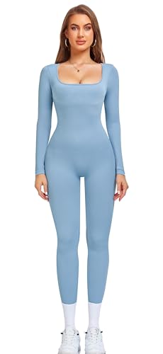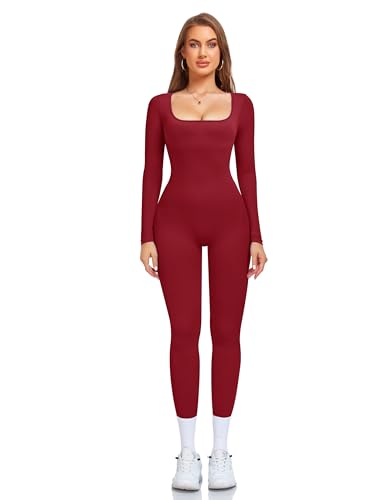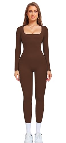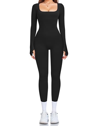 {"about_product": ["Seamless & Stretchy: Made of 90% Polyamide and 10% Elastane, this one piece jumpsuits for women is great breathable and sweat-wicking. Seamless ribbed fabric with four-way stretch keeps freedom of movement, lightweight but supportive. This smoothing ribbed jumpsuit isn't too tight, but flattering to wear.", "Square Neck & Full Length: Our womens workout jumpsuits is designed with square neck to show off your sexy collarbones. Adds a touch of elegance to the overall look. This basic jumpsuit with full length long sleeve and leggings, can wrap your body completely, slim fit and sculpt your figure perfectly.", "Tummy Control & Practical Crotch: The tighter and finer knit fabric on the waist and abdomen, this one piece yoga jumpsuit is slightly tummy control and compressive fit to outline your curves. The triangular design of crotch provide more room for movement, not easy to tear.", "Must-Have: It is a must-have in your wardrobe! This sexy workout romper is suitable for jogging, yoga, gym, Pilates, climbing, workout and fitness, exercises, sleep wear and daily wear. And you can style the yoga jumpsuits up with trench coat, denim coat, jacket, boots, or sneakers for fall and winter.", "Color & Size: This sexy bodycon jumpsuits has 4 basic colors, easy to match. Please choose size according to our size chart."], "product_description": null, "product_information": {"ASIN": "B0DNJJ5W4J", "Department": "Women", "Customer Reviews": "4.4 4.4 out of 5 stars \n\n (309)", "Best Sellers Rank": "#25,122 in Clothing, Shoes & Jewelry (See Top 100 in Clothing, Shoes & Jewelry) #43 in Women's Jumpsuits", "Item model number": "OL230829", "Date First Available": "August 29, 2023"}, "product_details": {"Origin": "Imported", "Fabric type": "90% Polyamide and 10% Elastane", "Care instructions": "Machine Wash"}}