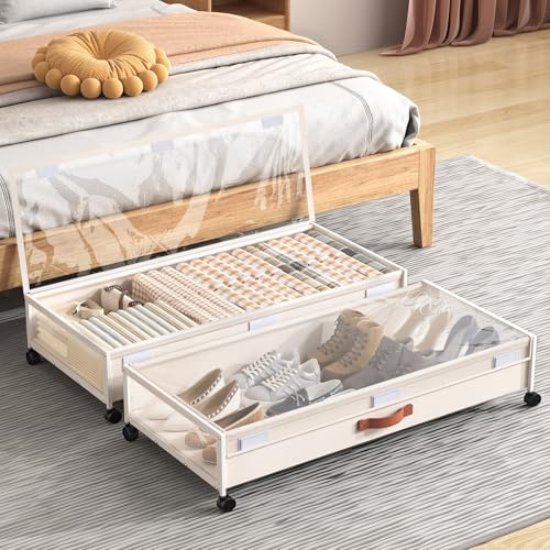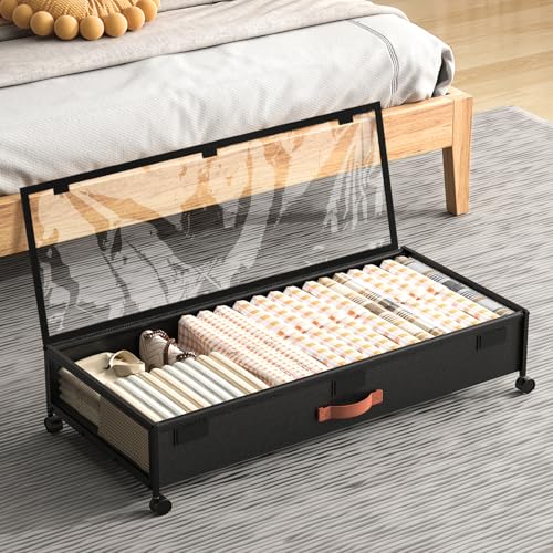 {"about_product": ["600D Oxford", "MAXIMIZE YOUR BEDROOM SPACE:Under-bed storage with Wheels is a one-stop solution to a myriad of organization issues, whether you're running low on closet space, want to tuck away seasonal items, or must make use of every last square foot in your home. Take advantage of the extra space under your bed to store belongings you don't want to see every day—after all, the phrase \"out of sight, out of mind\" reigns true when it comes to under-bed storage.", "LONG-LASTING DURABILITY:Underbed storage carts are made with metal framework , so they're far more durable than your typical under-the-bed storage unit. These under bed storage containers also feature 360-degree rotating wheels, 600D Oxford cloth storage bag with transparent PVC dust cover lid for additional protection, and a foldable design for when it's not in use.", "EFFORTLESS ASSEMBLY: Assembly is a breeze with the installation video available on the product page. You'll have it up and running in no time! TIPS:Read the instructions and follow them.", "LARGE STORAGE ORGANIZER: Under bed shoe storage unfolded size is 35.43\" X 16.5\" X 7.28\" , especially considering how big it is. You'll love the easy-roll castors on the base, the visual PVC lid for protecting your stuff, and the fact that it can store a ridiculous amount of clothes, shoes, and linens.", "MULTI-PURPOSE USE:This under bed storage with wheels can accommodate a wide range of items, from out-of-season clothes and shoes to books, toy decorations, and beyond. Place it in the bedroom, study, living room, laundry room, utility room, or even in the hallway. It effortlessly enhances any space while providing an elegant and efficient home storage solution."], "product_description": null, "product_information": {"ASIN": "B0CGXC5GSS", "Size": "XXXL(36\"x16.6\"x7.48\")", "Brand": "Eastherry", "Color": "Black 2 Pack", "Shape": "Rectangular", "Style": "2 PACK", "Finish": "Mixed", "Pattern": "Solid", "Capacity": "54 Liters", "Material": "Lid:plastic +Container:nonwoven fabric +Frame:iron", "Unit Count": "1.0 Count", "Item Weight": "8.97 pounds", "Part Number": "54L Large Capacity Under Bed Storage", "Closure Type": "Flip Top", "Manufacturer": "Eastherry", "Storage Volume": "54 Liters", "Number of Items": "2", "Special Feature": "360°Rotating Wheels, Durable Metal Structure, Under bed storage with wheels, Visible Dust Cover", "Material Feature": "sturdy frame", "Number Of Pieces": "2", "Special Features": "360°Rotating Wheels, Durable Metal Structure, Under bed storage with wheels, Visible Dust Cover", "Best Sellers Rank": "#3,312 in Baby (See Top 100 in Baby) #29 in Under-Bed Storage #37 in Nursery Bins & Boxes", "Item model number": "Under Bed Storage With Wheels and Lids", "Opening Mechanism": "Lift-Off Lid", "Product Dimensions": "35.43\"L x 16.5\"W x 7.28\"H", "Batteries Included?": "No", "Batteries Required?": "No", "Included Components": "Storage Box", "Date First Available": "August 30, 2023", "Item Package Quantity": "1", "Number of Compartments": "1", "Water Resistance Level": "Water Repellent", "Recommended Uses For Product": "For Shoes, For Clothes", "Assembly Instructions Description": "Requires assembly with user-friendly instructions"}, "product_details": {"Brand": "Eastherry", "Color": "Black 2 Pack", "Style": "2 PACK", "Material": "Lid:plastic +Container:nonwoven fabric +Frame:iron", "Special Feature": "360°Rotating Wheels, Durable Metal Structure, Under bed storage with wheels, Visible Dust Cover"}}