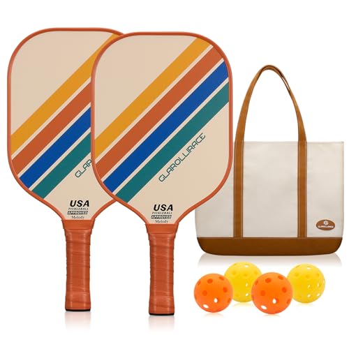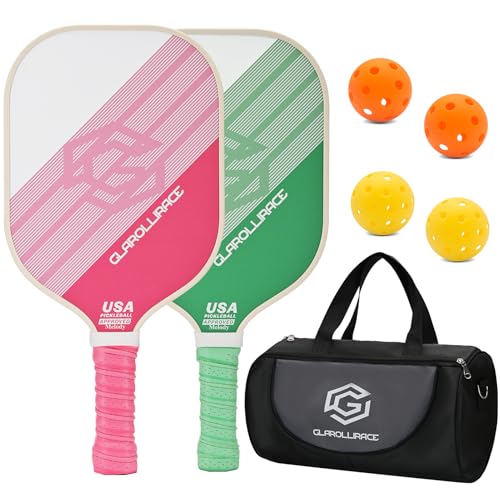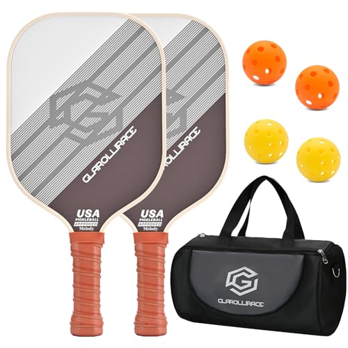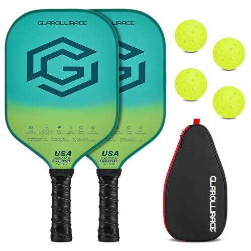 {"about_product": ["【Excellent performance of rackets】GLAROLLIRACE pickleball paddles are made of premium s-class fiberglass surface with frosted treatment, which provides more rotation and larger sweet spot, enhancing your hitting ball probability and accuracy. 13mm polypropylene honeycomb core offers more power and better control, meanwhile reduces vibration and noise.", "【USAPA certification】Our pickleball paddles are tested and certified by USAPA, which means they are qualified to play in official competitions and pickleball tournament for pickleball masters. Meanwhile it is also a good choice for starters to learn and exercise.GLAROLLIRACE pickleball rackets are suitable for all ages, men and women.", "【Extremely feeling of handles】We also focus on the quality of pickleball grips which can promote your confidence of waving and holding paddles. Our pickleball handles are soft, breathable, cushioned and textured, you can hold them tightly, not easily slide off hands. They also would not become sticky after using a long time.", "【Lightweight and wide body】Each pickleball paddle is 8-8.5 oz, wide body and lightweight but extremely firm. When you wave paddles and hit ball, you use less effort. TPU edge guard can protect paddles when crashing or falling on the ground.", "【Abundant component of set】A pickleball paddles set includes 2 retro style fiberglass rackets, 2 indoor pickleball balls with 26 holes and another 2 outdoors with 40 holes. A durable pickleball carrybag can hold all of them above, and also extra little stuff like keys, food and cellphones."], "product_description": null, "product_information": {"ASIN": "B0CHDP1Q2B", "Size": "Medium", "Brand": "Glarollirace", "Color": "Set of 2 Retro", "Sport": "Pickleball", "Material": "Fiberglass", "Grip Size": "4 1/4 inch", "Brand Name": "Glarollirace", "Model Name": "Glar-PKQP402", "Model Year": "2023", "Item Weight": "8 Ounces", "Part Number": "Glar-PKQP402", "Skill Level": "All", "Manufacturer": "Glarollirace", "Frame Material": "Fiberglass surface+PVC edge guard", "Package Weight": "0.76 Kilograms", "Shaft Material": "Fiberglass", "Number of Items": "2", "Suggested Users": "unisex-adult", "Best Sellers Rank": "#6,166 in Sports & Outdoors (See Top 100 in Sports & Outdoors) #55 in Pickle-Ball Equipment", "Product Dimensions": "15.7\"L x 7.7\"W", "Included Components": "2 pickleball paddles,4 balls, 1 bag", "Date First Available": "September 6, 2023", "Warranty Description": "1 year warranty", "Item Dimensions LxWxH": "15.7 x 7.7 x 0.04 inches", "Age Range (Description)": "Adult", "Item Package Dimensions L x W x H": "16.73 x 10.55 x 3.9 inches"}, "product_details": {"Size": "Medium", "Brand": "Glarollirace", "Sport": "Pickleball", "Material": "Fiberglass", "Grip Size": "4 1/4 inch", "Item Weight": "8 Ounces", "Skill Level": "All", "Frame Material": "Fiberglass surface+PVC edge guard", "Shaft Material": "Fiberglass", "Age Range (Description)": "Adult"}}