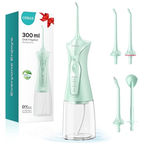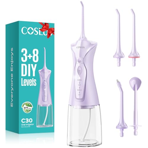 {"about_product": ["Gentle Oral Care with Precision Clean: After 5 years of R&D by the COSLUS team, we present a certified, superior water flosser pick, the wireless flosser can offer 1400-1800 dual-pulse streams/min and 30-150PSI adjustable strong water pressure for dental plaque removal. Gum sensitive flosser with 4 multi-functional nozzles, easily removes food debris trapped between braces, meanwhile meets the comprehensive oral care of teeth, gums and tongue can effectively solve and supports oral health by targeting common concerns", "Upgraded 4 Modes 11 Intensity, DIY Choice: This cordless water flosser has been upgraded with 8-Level custom pressure from daily oral care to braces, orthodontic and sensitive gum care. 4 modes precision cleaning (Normal/Soft/Pulse) from children to seniors meets the oral health all age groups, The memory function enables one-touch operation for ease of use. This portable water flosser protects your oral health in a more scientific and personalized way, ideal for home use or family trips", "BPA-Free 300ml Wide-Mouth Large Water Tank, Easy To Clean & Fill: This portable cordless gum sensitive water flosser comes equipped with a 300ml extra-large detachable tank, no repeated refills, as a single fill can 90-seconds continuous cleaning. Moreover, the wide-mouth design of the water tank not only quick and easy filling, but also solves the problem of difficult cleaning and drying in traditional models, Detachable for deep cleaning every corner ensuring safe your oral cleaning", "IPX7 Waterproof & 3 Years Durablility: This rechargeable cordless water dental flossers pic for business travelers is built to last with IPX7 waterproofing, allowing for easy cleaning and safe use in the shower. Adjustable Pressure for gums brace deep cleaning flosser has upgraded motor provides more effective cleaning and increased durability, lasting up to 3 years", "3 Hour Fast Charging, 60 Uses Extended Battery Life for On-the-Go Use: The portable travel water dental pick flosser features a powerful green battery that is double the time of other models. It only 3-hours full charge and lasts 60 times per charge trips. Its lightweight & compact design easy keep in work bag, making it easy to use in travel, office, and business trip oral care without any burden. It also comes with a USB cable (adapter not included) for easy charging", "Note: What will you get? 1xWater Dental Flosser; 4xReplacement Heads;1xUser Manual; 1xCharging Cable. (Adapter is not included to avoid wasting resources, but you can charge it using any 5V adapter on hand. If need, get from COSLUS.)"], "product_description": null, "product_information": {"ASIN": "B0CHFT6T5P", "Batteries": "1 Lithium Polymer batteries required. (included)", "Manufacturer": "COSLUS", "Customer Reviews": "4.4 4.4 out of 5 stars \n\n (13,223)", "Best Sellers Rank": "#563 in Health & Household (See Top 100 in Health & Household) #7 in Power Dental Flossers", "Item model number": "C30( FC5360)", "Product Dimensions": "8.71 x 3.29 x 2.81 inches; 15.04 ounces"}, "product_details": {"Brand": "COSLUS", "Unit Count": "1.00 Count", "Power Source": "Battery Powered", "Special Feature": "8-Level DIY Pressure, Pressure Adjuster, Adjustable water pressure, Auto-Adjust to Last Used Mode, DIY Mode, Pressure Memory, Multiple Operation Modes, Multiple Pressure Settings, Multiple Tips, Orthodontist Recommended, Gum Health, Gentle Braces Cleaning, Business Trip Oral Care, Airplane Travel Essentials, Noiseless, Multi-User Households, Family Shared, Multi-Scenario Users,Multi-user, Shared Oral Care, Customizable cleaning,Adjustable Modes, Non-Slip Grip, Wide-Mouth Water Tank , Detachable Water Tank, 300 Capacity Water, Rotatable Tip, Gum Care Nozzle, Orthodontic Nozzle, 4 Nozzle Kits, 360°rotating nozzles, Portable, Cordless, Travel,Compact Design, Lightweight, Rechargeable, IPX7 Waterproof See more", "Product Benefits": "Gum Health, Gum Health, Braces Deep Cleaning, braces cleaner, Gentle for Gum Sensitive, Orthodontic care, Family Oral Care, Frequent Travelers Oral Care, Prevents Bad Breath, Prevents Cavities, Removes Plaque, Dental Plaque Removal, Food Removal,Easier than Floss, Floss Replacement,Seniors Elderly Care, Teeth Deep Cleaning, Freshen your Breath, Improve Oral Health, Simle in Confident See more"}}