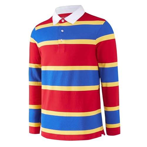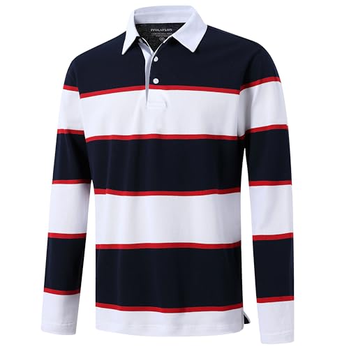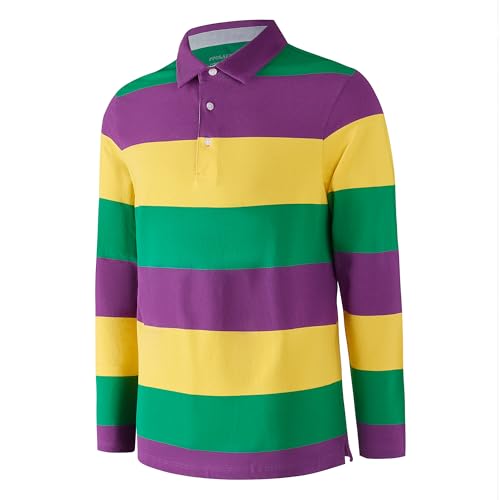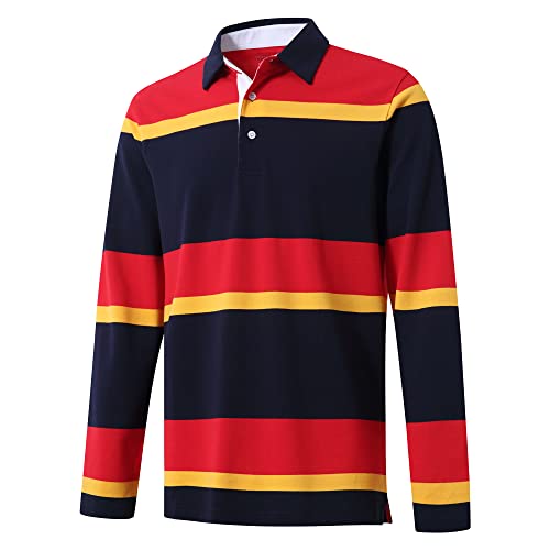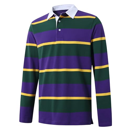 {"about_product": ["QUALITY MATERIAL: Our mens polo shirts made from cotton blend and spandex, soft, lightweight, stretch, breathable to wear, keeps you comfortable and still have good shape after wash.", "STYLISH FEATURES: Wearing our polo shirts for men with stylish stripes, collar placket, contrast lapel collar, long sleeve, regular fit, no pilling and no shrunk, fashion and modern look.", "SIZE AND COLOR: Casual mens long sleeve polo shirts, based on classic fit u.s size: S, M, L, XL, XXL, 3XL with various stripes colors: pink yellow red grey green navy blue purple that you can have different look everyday.", "OCCASION: Our long sleeve shirt for men are perfect for casual, business, daily wear, sports, work, holiday, travel etc. Also cool for weekend, great gifts for husband,families, boyfriend and friends.", "WARM TIPS: This long sleeve polo shirts for men, the model is 5'11\"height, 172lbs wearing a size medium for reference. Please refer to the size chart in product image or description before you order it."], "product_description": null, "product_information": {"ASIN": "B0CHZ5X28S", "Department": "mens", "Customer Reviews": "4.4 4.4 out of 5 stars \n\n (721)", "Product Warranty": "For warranty information about this product, please click here", "Best Sellers Rank": "#13,130 in Clothing, Shoes & Jewelry (See Top 100 in Clothing, Shoes & Jewelry) #46 in Men's Polo Shirts #2,867 in Sport Specific Clothing", "Date First Available": "September 13, 2023"}, "product_details": {"Origin": "Imported", "Fabric type": "95% Cotton, 5% Spandex", "Closure type": "Button", "Care instructions": "Machine Wash"}}
