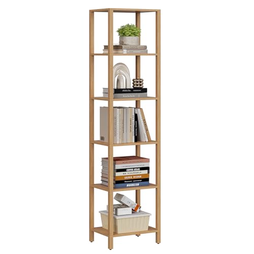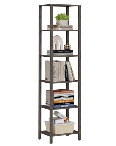 {"about_product": ["[1 Bookshelf Or 2 End Table] This skinny open bookshelf has 6 shelves. You can put it in your living room, study room, bedroom, bathroom, kitchen, entryway space and office to meet your various storage needs and greatly save your space and organizing time. We also provide you with 4 additional \"c\" and \"E\" parts, and you can choose whether to use them to get 1 bookshelf or 2 end tables.", "[More Storage Place] Size:10.7\"D x 14.5\"W x 65.3\"H Our 6 Tier book shelf provides large storage area for your multiple items, books, family photos, frames, devices, utensils. You can use this thin bookshelf to put your favorite books, crafts, photo albums. This bookcase is compact and lightweight without occupy much space,you can use it at anywhere you need to better organize your messy items.", "[Protect your Floor] We provide 4 adjustable feet for you to adjust on uneven floors. The plastic feet also prevent the legs from directly touching the floor. Avoid tiles, Scratches on wooden floors.", "[Easy Assembly] Simple and Easy to Assemble! Detailed graphic user’s manual instructions and spare parts/accessories are included in the package, no other special tools are required.Please remember to install the anti-tilting tool on the wall for better stability.", "[After Sale Service] Every bookshelf is thoroughly and rigorously tested. TUTOTAK friendly and professional customer service will respond to you within 24 hours. If you have any questions, please feel free to contact us via email."], "product_description": null, "product_information": {"ASIN": "B0CKRK6BPN", "Size": "6-Tier(10.7 x 14.5 x 65.3 Inches)", "Brand": "TUTOTAK", "Color": "Brown", "Style": "Industrial", "Room Type": "Bedroom, Home Office, Kitchen, Living Room", "Unit Count": "6.0 Count", "Finish Type": "Painted", "Item Weight": "17.4 pounds", "Manufacturer": "TUTOTAK", "Number of Items": "1", "Shelf Thickness": "1.25 Inches", "Special Feature": "Detachable, Stackable", "Furniture Finish": "Black", "Assembly Required": "Yes", "Best Sellers Rank": "#24,650 in Home & Kitchen (See Top 100 in Home & Kitchen) #43 in Bookcases", "Installation Type": "Freestanding", "Item model number": "BS01BB006", "Number of Shelves": "6", "Product Dimensions": "10.7\"D x 14.5\"W x 65.3\"H", "Included Components": "Instruction Manual", "Date First Available": "November 14, 2023", "Product Care Instructions": "Wipe with Dry Cloth", "Specific Uses For Product": "Books", "Recommended Uses For Product": "Bathroom, Bedroom, Kitchen, Living Room"}, "product_details": {"Shape": "Rectangular", "Style": "Industrial", "Material": "Engineered Wood", "Room Type": "Bedroom, Home Office, Kitchen, Living Room", "Shelf Type": "Tiered Shelf", "Finish Type": "Painted", "Mounting Type": "Floor Mount", "Special Feature": "Detachable, Stackable", "Number of Shelves": "6", "Product Dimensions": "10.7"D x 14.5"W x 65.3"H"}}