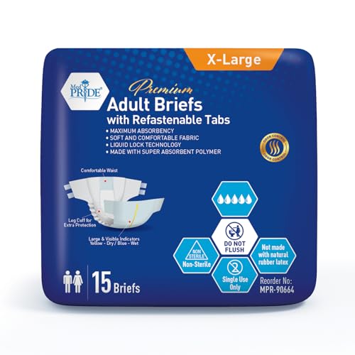 {"about_product": ["MAXIMUM ABSORBENCY BRIEFS WITH LIQUID LOCK TECHNOLOGY: The Medpride premium adult briefs for bladder control are extremely absorbent to handle even severe incontinence. Combining super absorbent polymer, liquid lock technology and contoured leg cuffs that securely trap liquids and prevent leaks, these briefs are great for overnight protection, postpartum care or post-op recovery.", "REFASTENABLE TABS FOR SECURE FIT | WETNESS INDICATOR: The refastenable tabs of your disposable adult diapers allow you to quickly readjust the tightness of the brief, as many times as you want, for uncompromised comfort. The elastic waistline also ensures a perfect fit for all-over protection. Plus, the large and visible indicators will let you know when it’s time for a change (yellow=dry, blue=wet).", "ODOR CONTROL TECHNOLOGY & ULTRA-BREATHABLE: Our adult diapers for men and women feature an odor-control technology that completely traps and eliminates unpleasant smells. Along with their latex-free, breathable quality that helps protect your sensitive, intimate skin, these bladder and bowel incontinence diapers can be worn for hours on end, without causing the slightest discomfort.", "UNISEX DESIGN – AVAILABLE IN 5 DIFFERENT SIZES: Everyone can suffer from incontinence and everyone deserves access to the best incontinence products. That’s why the Medpride overnight adult diapers with tabs come in 5 sizes [Medium, Large, X-Large, XX-Large & XXX-Large] and in various value packs, to find the perfect match for your needs.", "ORDER WITH PEACE OF MIND: Medpride is your trusted supplier of effective, top quality medical products that you can count on to equip your personal or professional medical kit. Backed by a 30-Day Money Back Guarantee, you have every good reason to choose Medpride for all your personal care supplies!"], "product_description": null, "product_information": {"ASIN": "B0CL59MM7L", "Manufacturer": "Shield Line", "Customer Reviews": "3.9 3.9 out of 5 stars \n\n (96)", "Best Sellers Rank": "#43,041 in Health & Household (See Top 100 in Health & Household) #146 in Incontinence Protective Briefs & Underwear", "Package Dimensions": "12.87 x 9.37 x 6.89 inches; 2.82 Pounds", "Date First Available": "October 16, 2023"}, "product_details": {"Brand": "MED PRIDE", "Color": "White", "Number of Items": "1", "Age Range (Description)": "Adult", "Incontinence Protector Type": "Adult Diaper"}}
